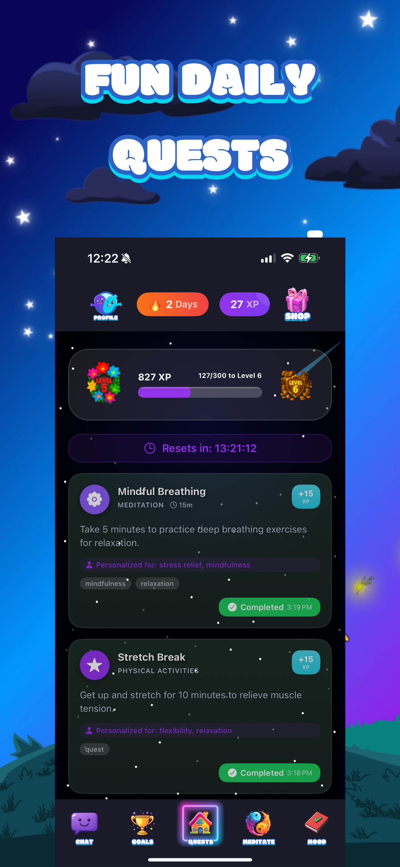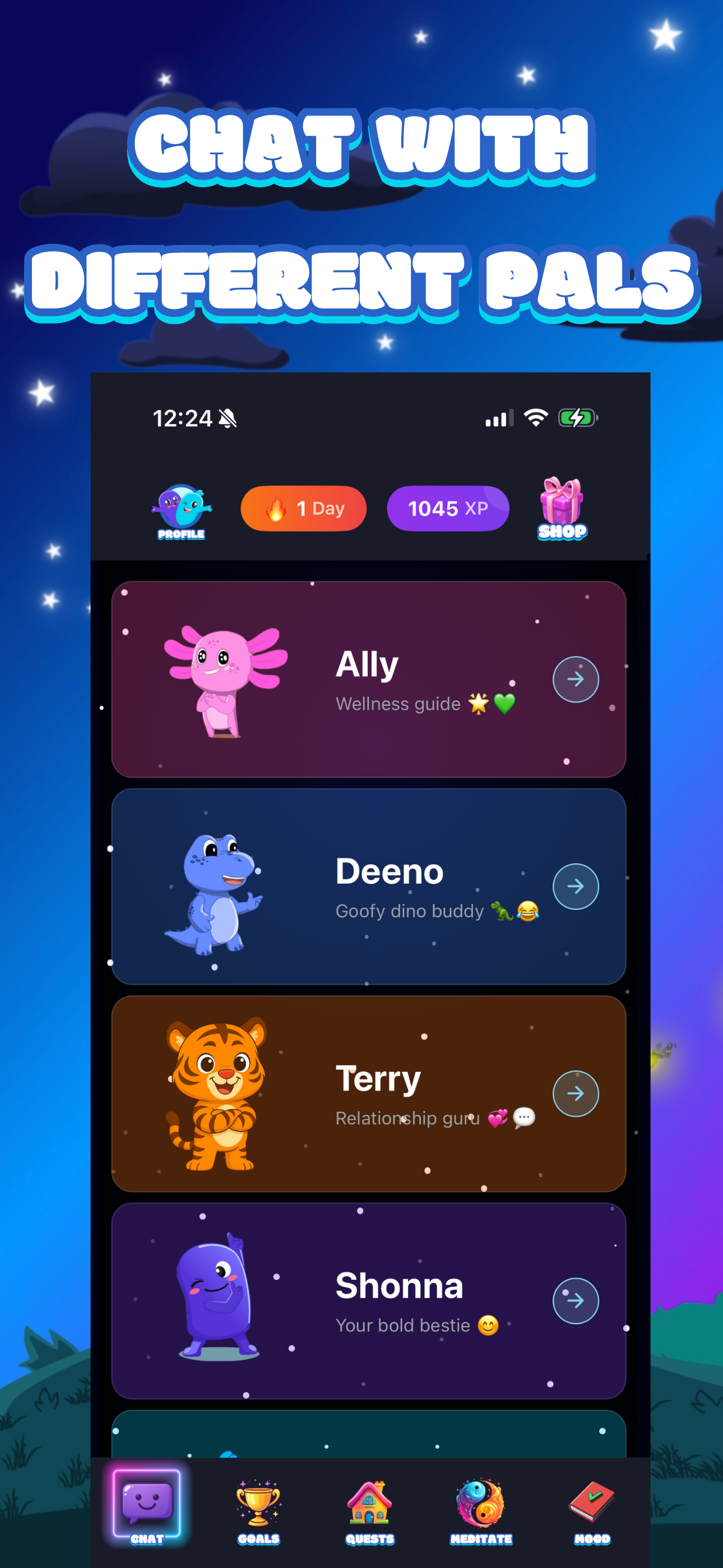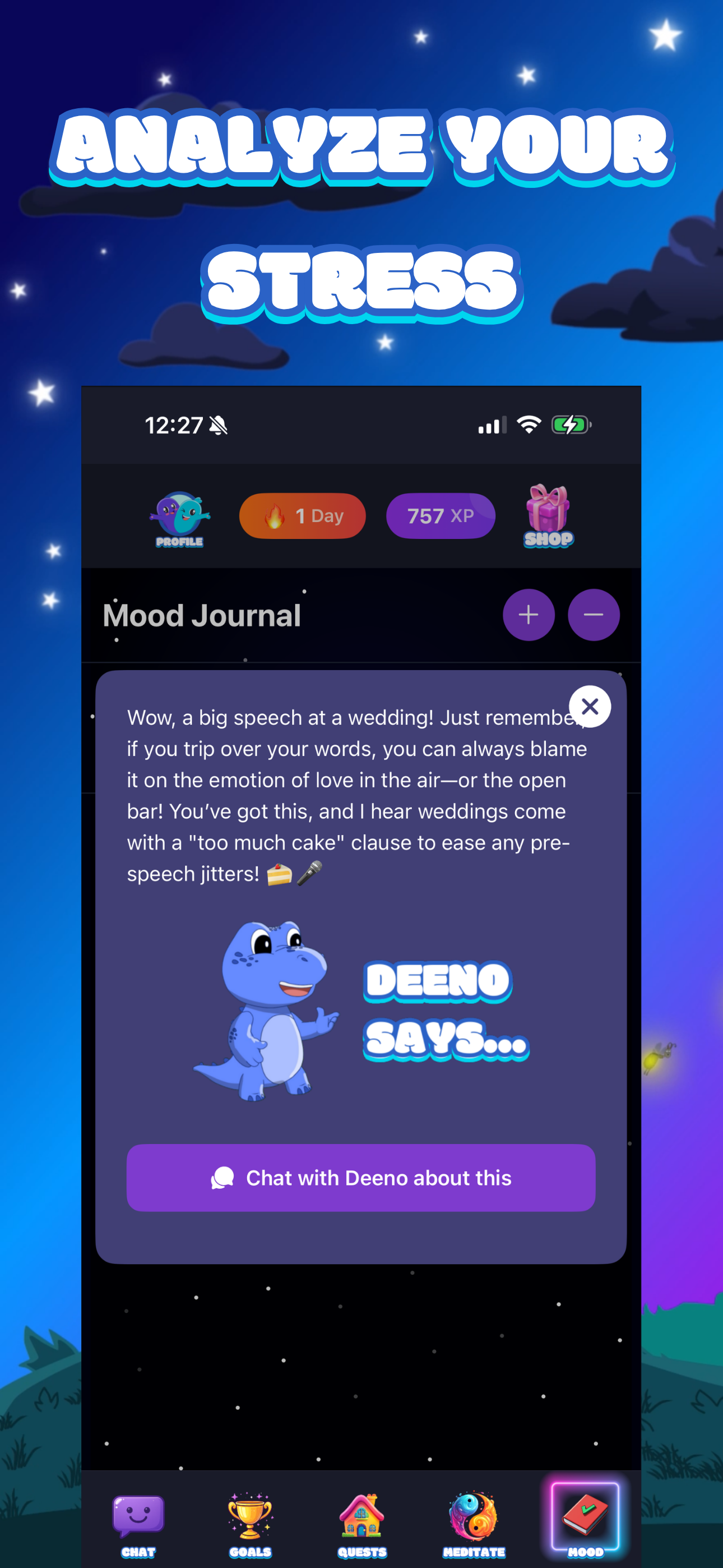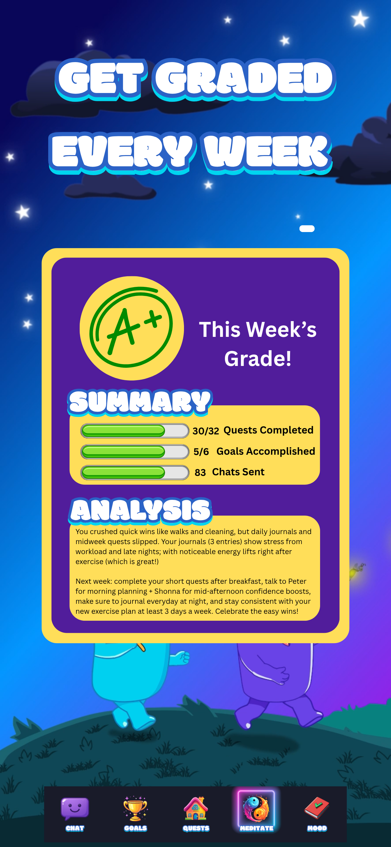The most advanced wellness companion app ever built! PeacePal gives you daily quests that evolve with you, weekly report cards to analyze and recommend how to move forward, mood journaling that talks back, and fun characters who motivate, listen, and guide you through every step of your journey!