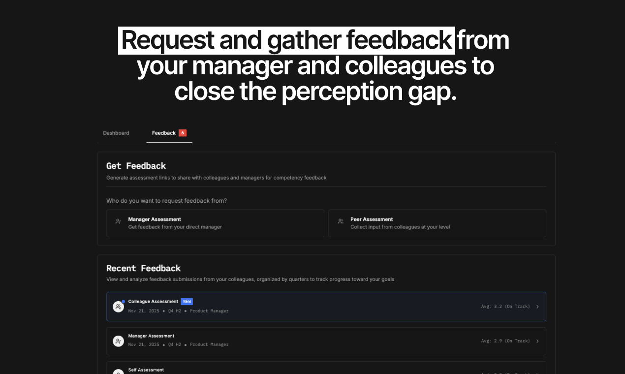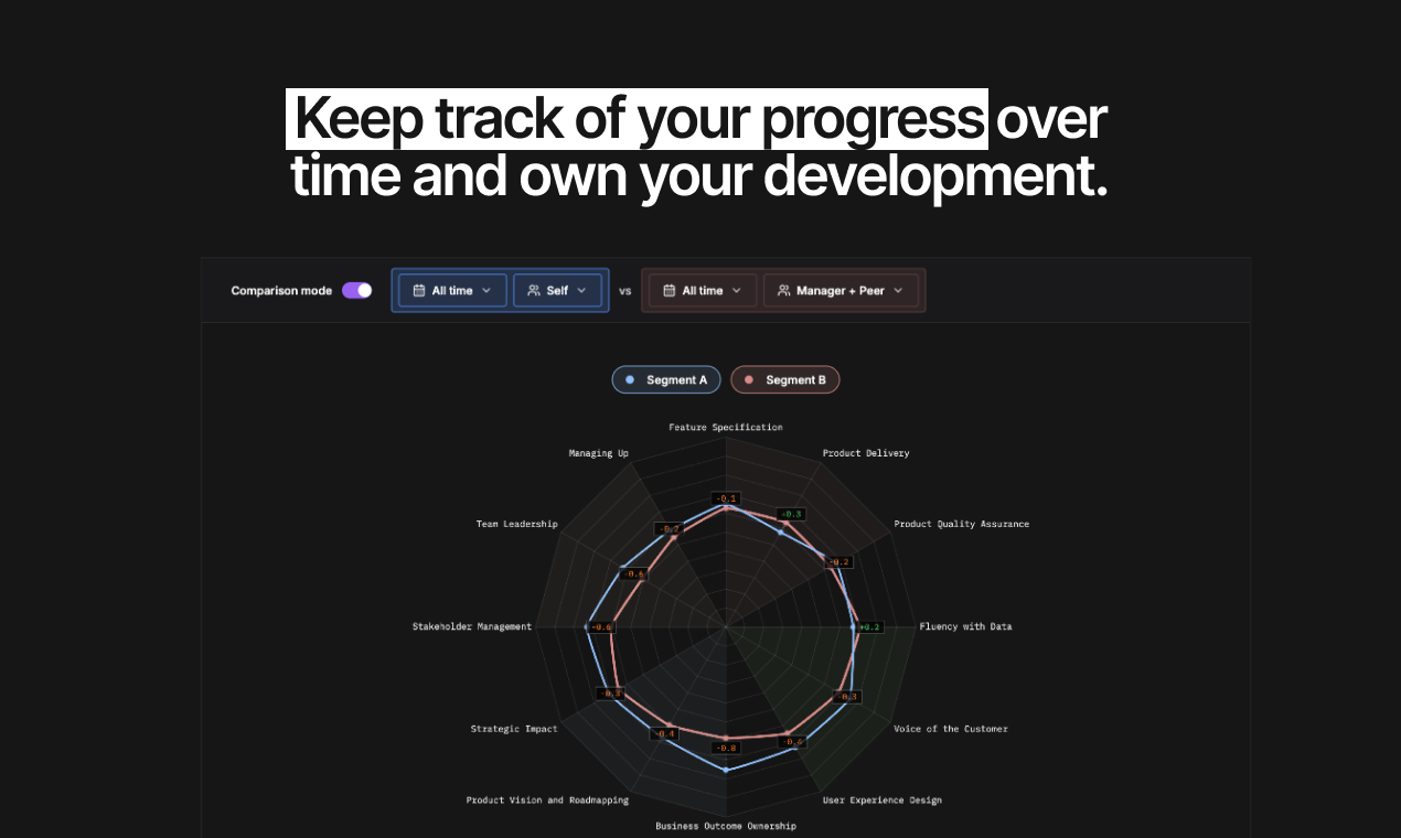 Most PMs don’t spend enough time on their development. Managers are busy, feedback gets lost, and progress stalls. Radia helps you take control with a simple but flexible framework to track critical competencies, visualise feedback, and track your progress over time.