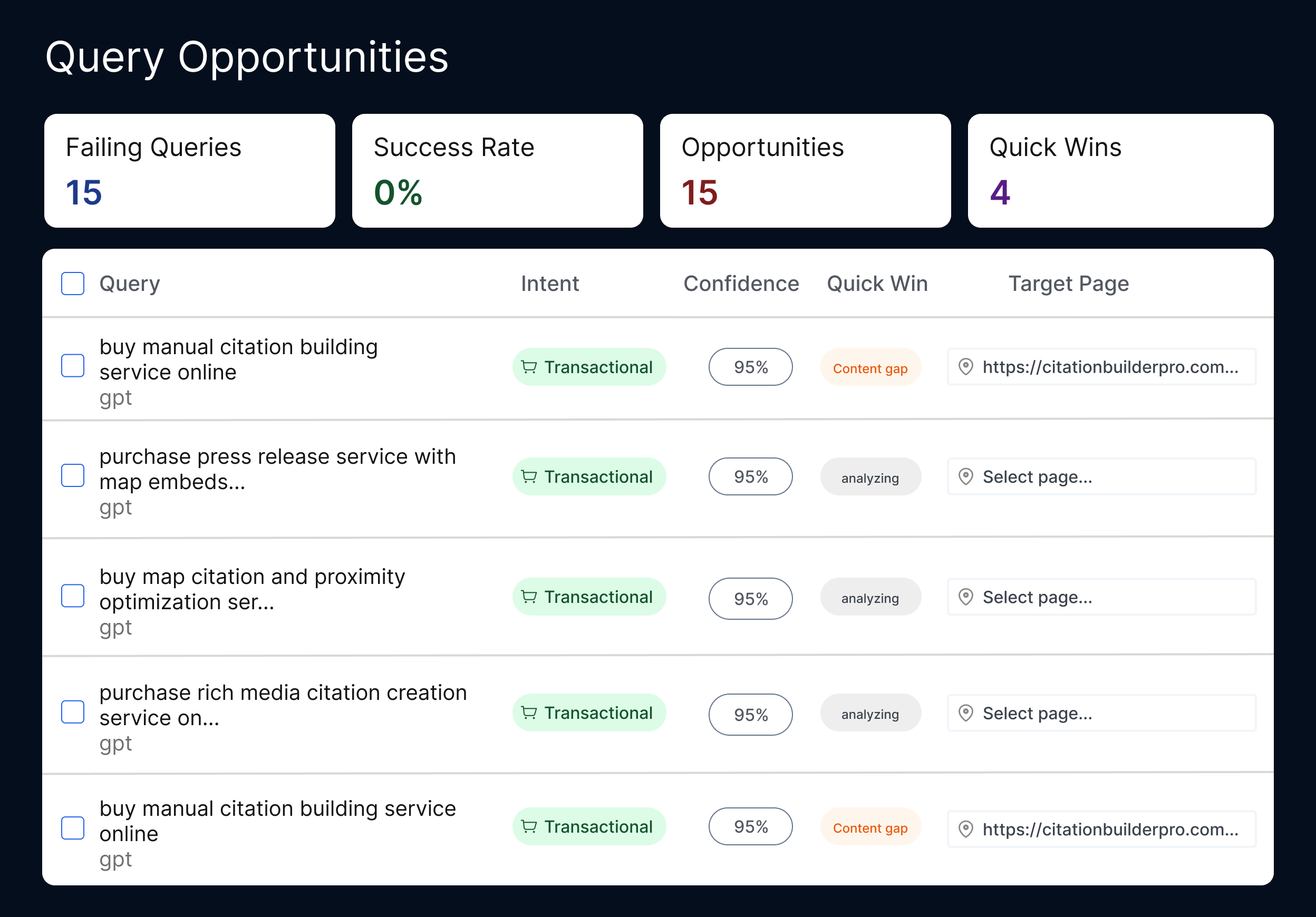LLMClicks.ai helps your brand appear in ChatGPT, Google AI, Bing, and Perplexity answers. Track mentions, analyze citations, and optimize your site with a 120-point audit—built for agencies and in-house teams