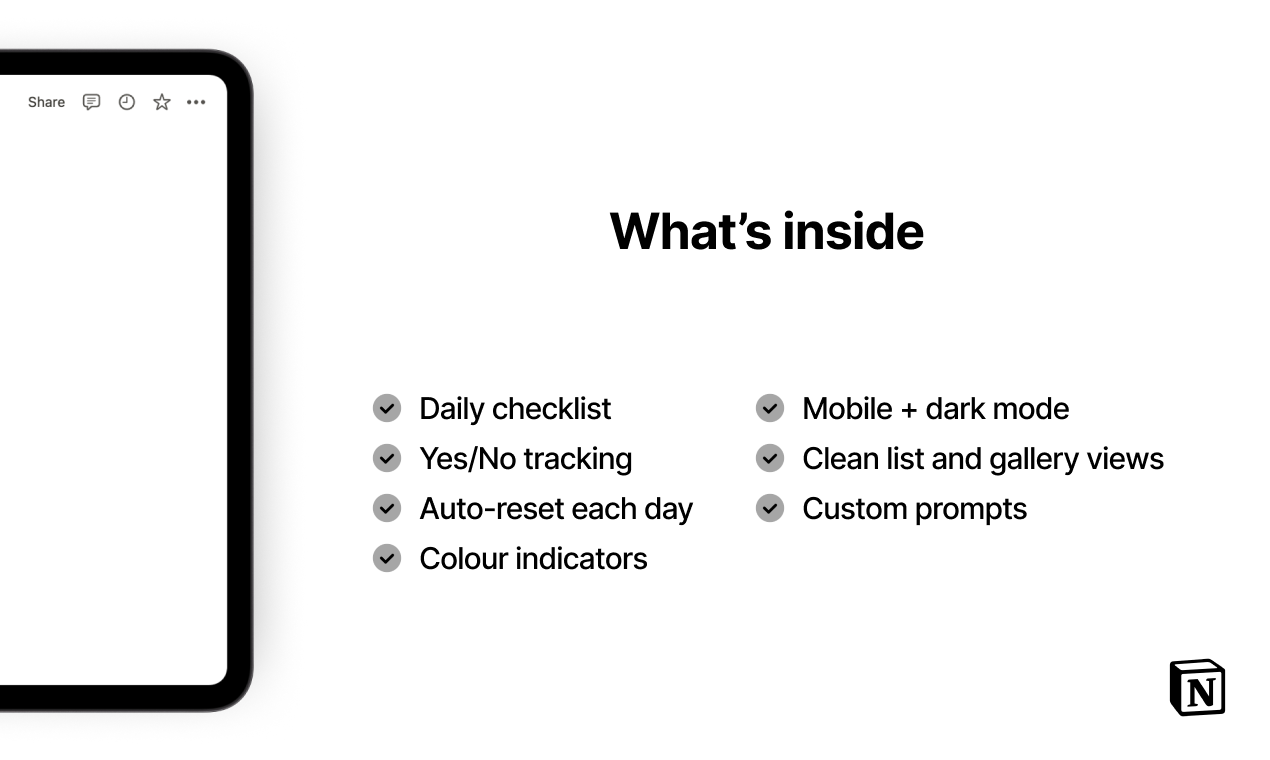 A simple daily checklist for quick Yes/No tracking.