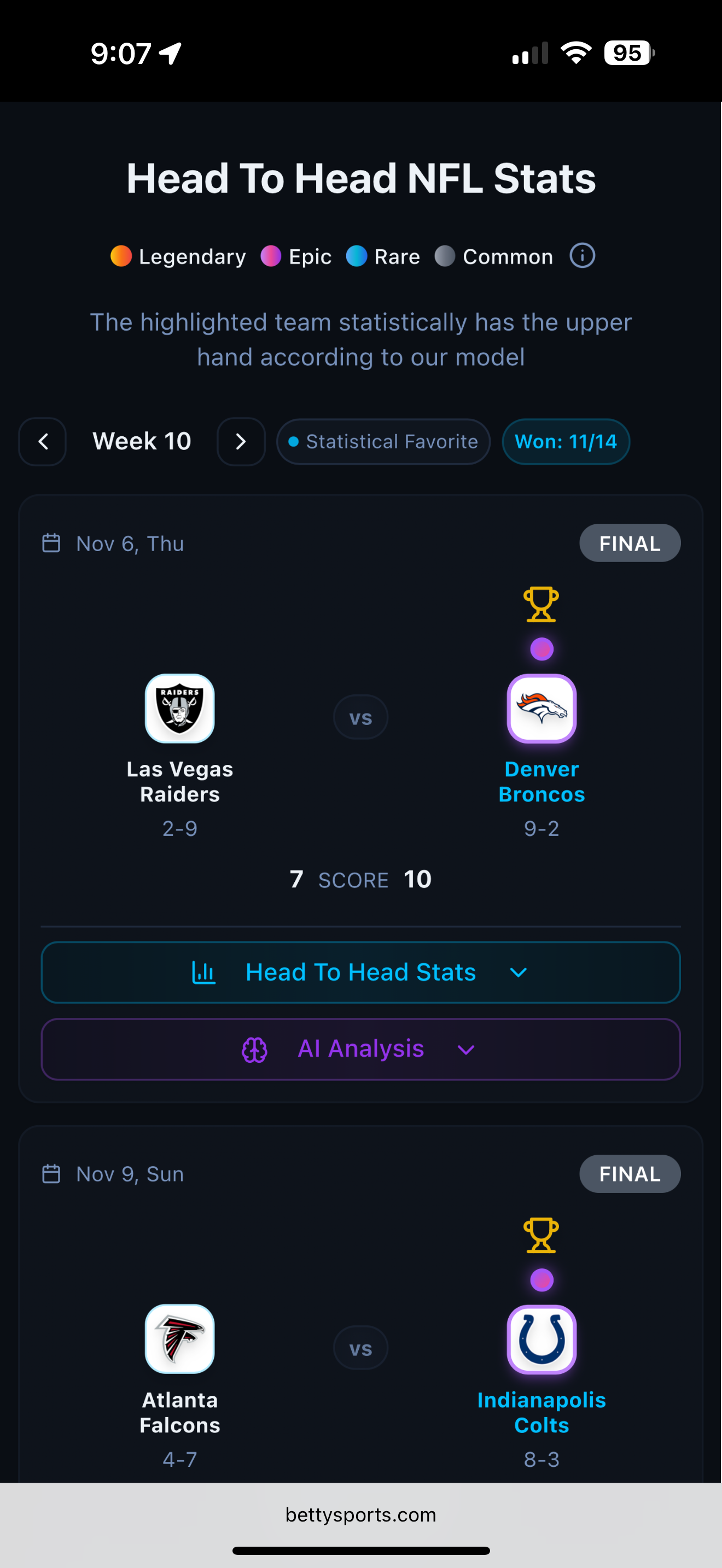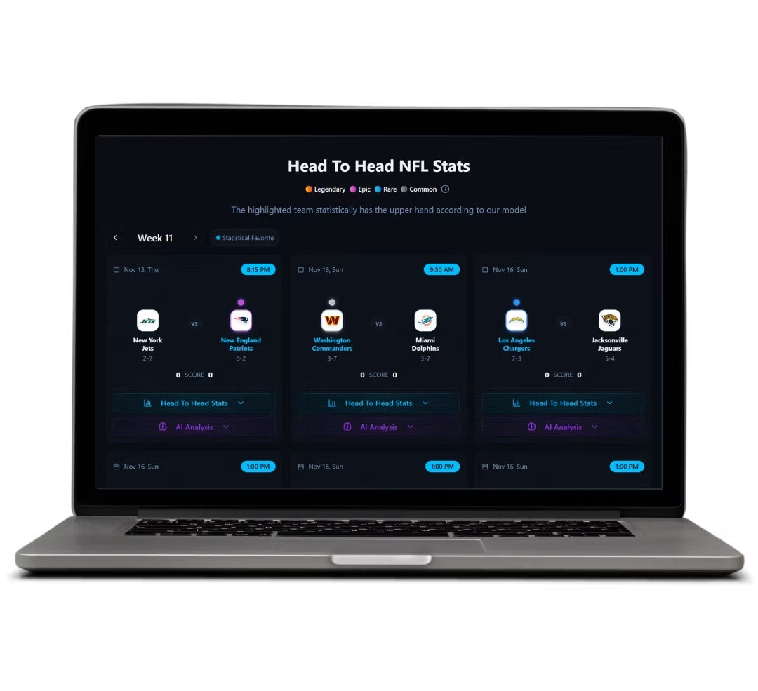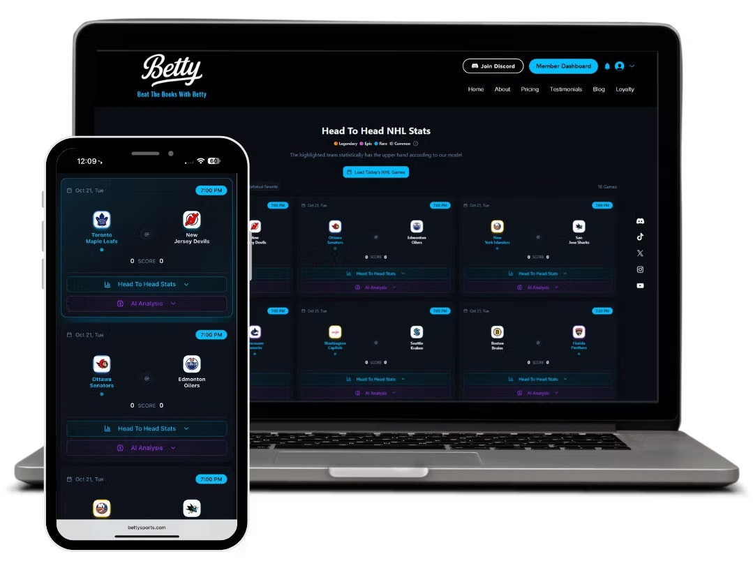 Meet Betty: your new AI sports matchup engine. Instead of endless stats, Betty instantly ranks every game based on thousands of data points—showing you who has the advantage in offense, defense, momentum, and more. NFL, NBA, NHL, MLB… everything in one clean, visual head-to-head dashboard. No picks, no gurus—just transparent, data-driven insights that help you bet smarter.