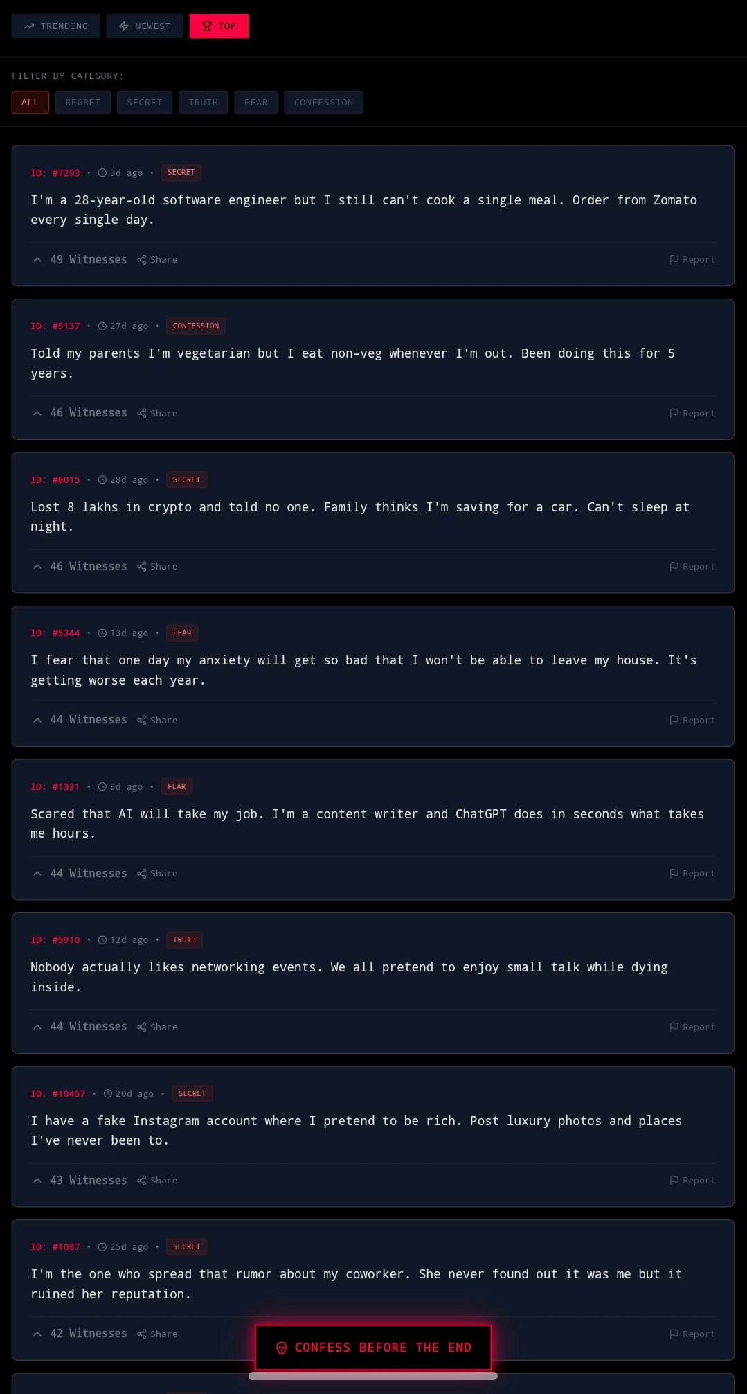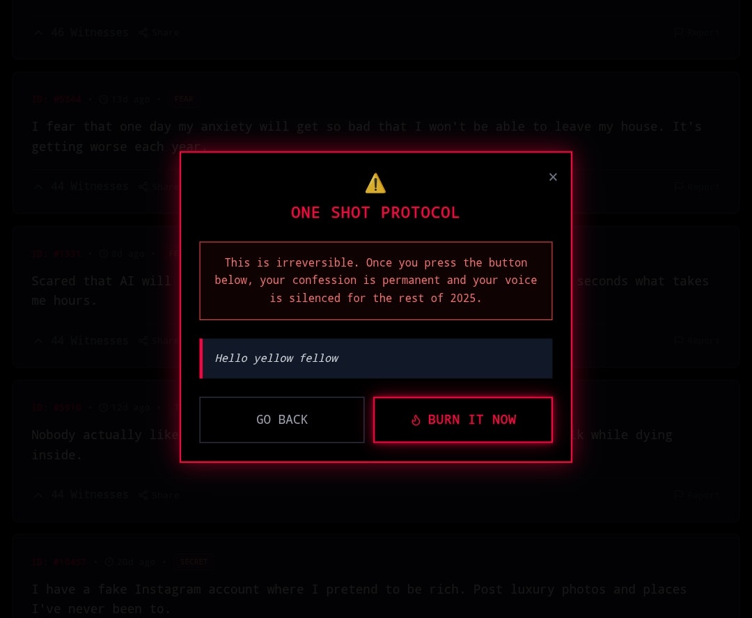 2025 to 2026: The world ends Dec 31, 2025. One Based on the viral Indian meme 2026 mai duniya khatam (world ends in 2026), this is a time-limited anonymous confession platform with a 29-day countdown. The concept is simple: people submit completely anonymous confessions before time runs out. After 29 days, the website closes permanently.