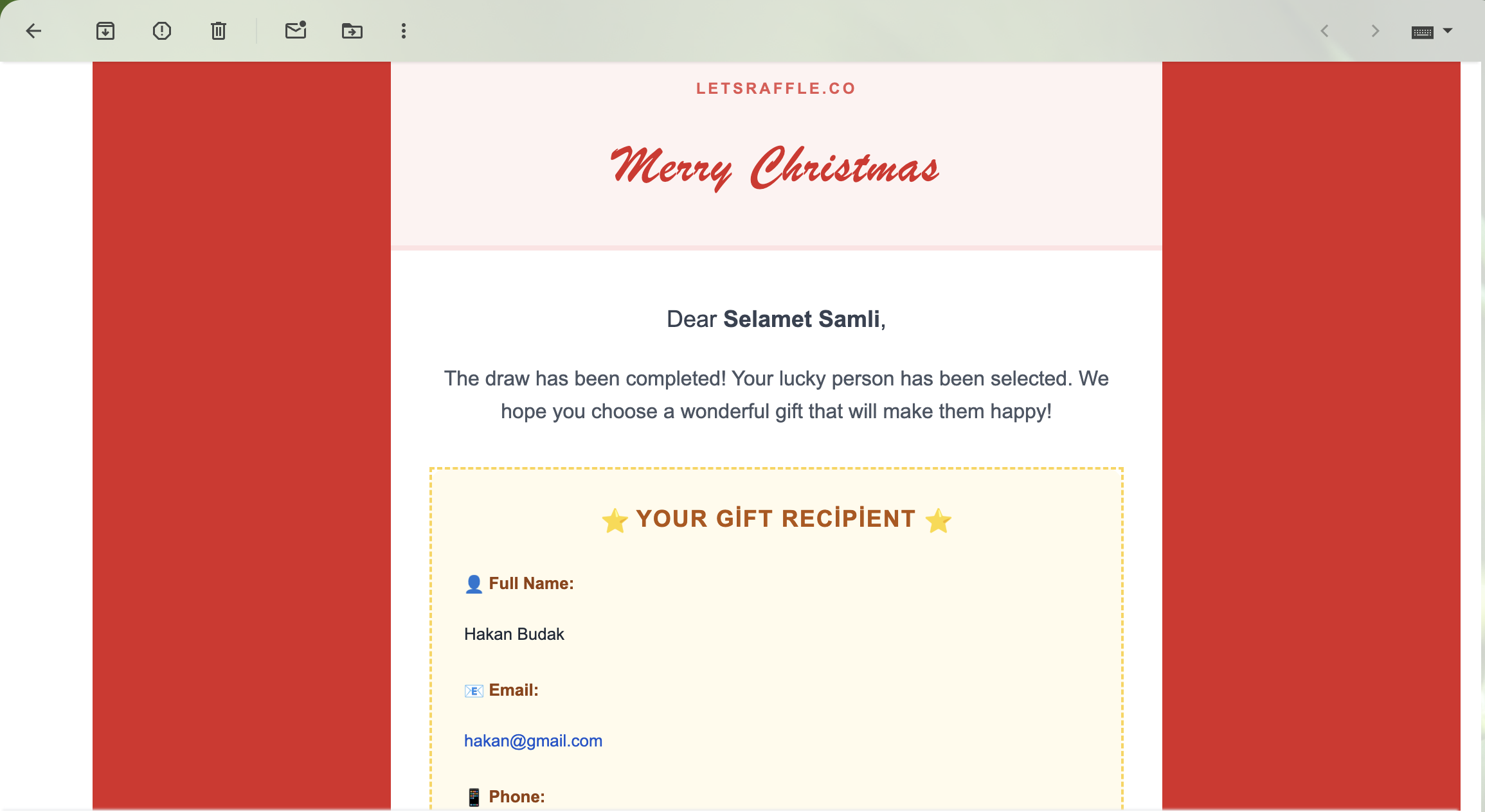 Let's Raffle makes organising Secret Santa gift exchanges a breeze! Create draws in seconds, invite participants via shareable links or add them manually, and let our smart algorithm handle fair matching. Features automatic email notifications, QR codes for easy sharing, scheduled draws, and a beautiful holiday-themed interface. Perfect for offices, families, and small groups of friends. 🎁✨