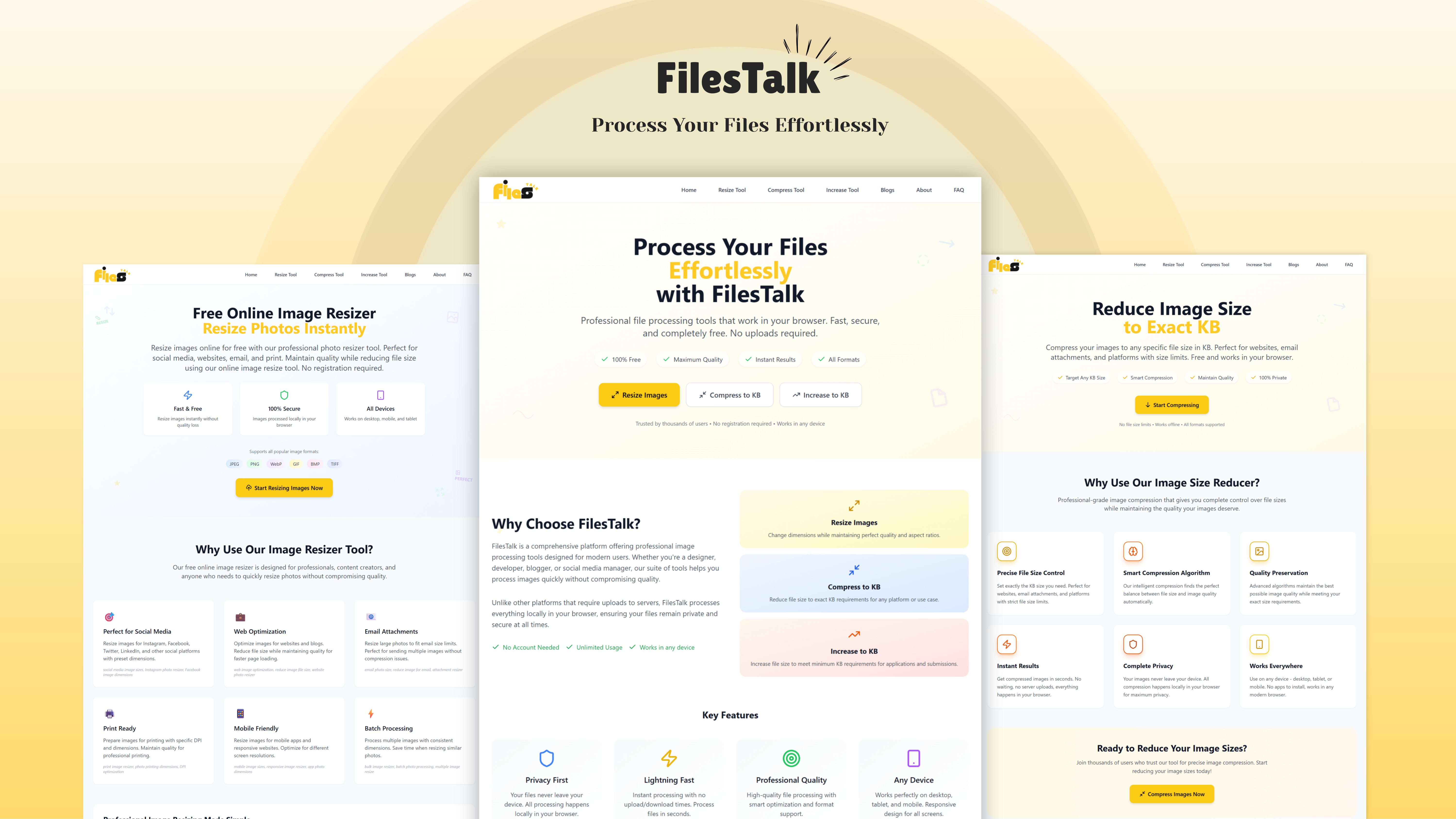 FilesTalk offers professional file processing tools including image resizer, format converter, and more. Free, fast, and secure tools for all your file needs.
