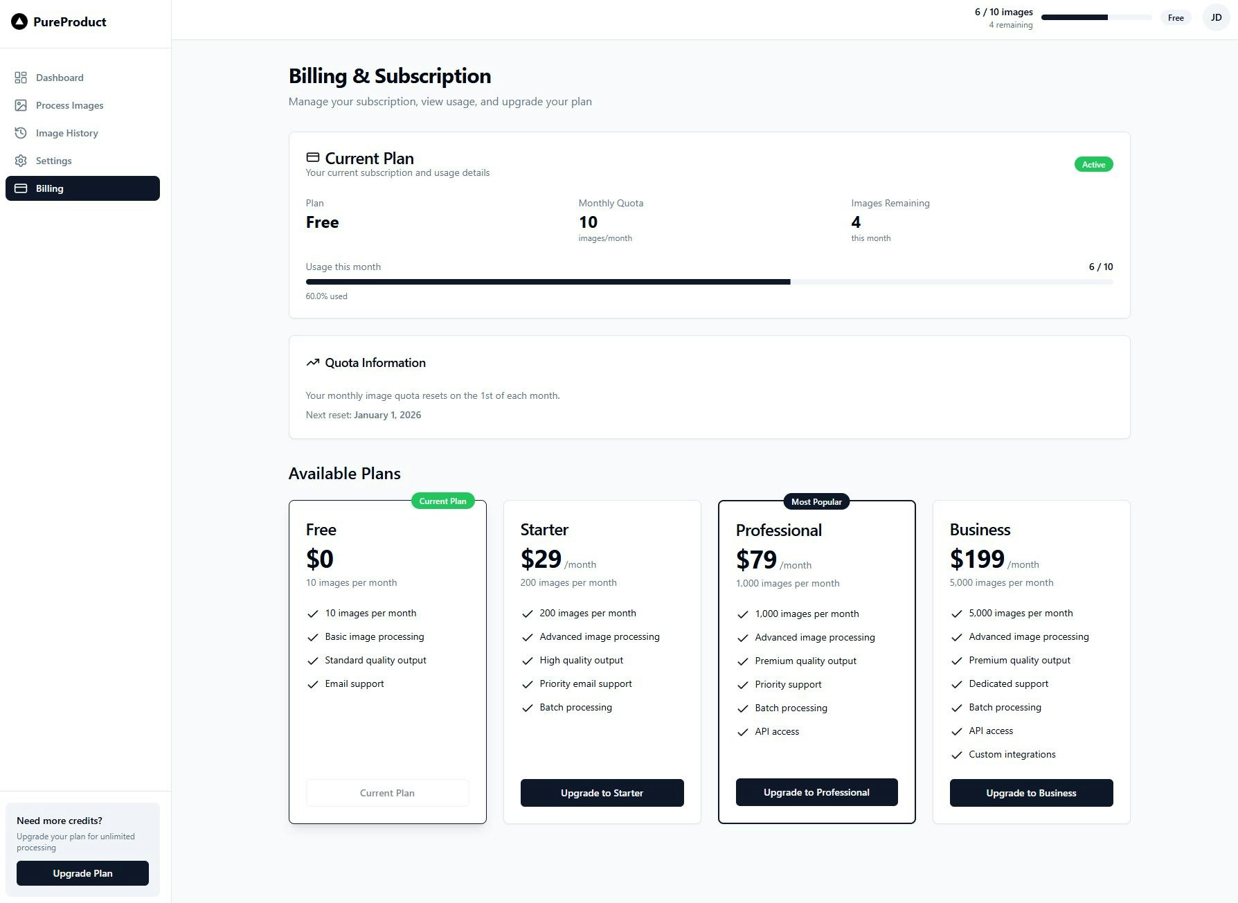 Product photography bottleneck: Removing backgrounds manually takes 5 min/image. Remove.bg costs $0.20/image = $40 for 200 products. Not sustainable. PureProduct.io - $0.0025/image (200x cheaper) - Bulk process 500 images in 60 seconds - $29/month for 200 images - BiRefNet AI quality - One-click download ZIP - Preserves SKU filenames - Perfect white backgrounds for marketplaces Built for Shopify, Amazon, Etsy sellers managing hundreds of SKUs. Stop wasting time and money on background removal.