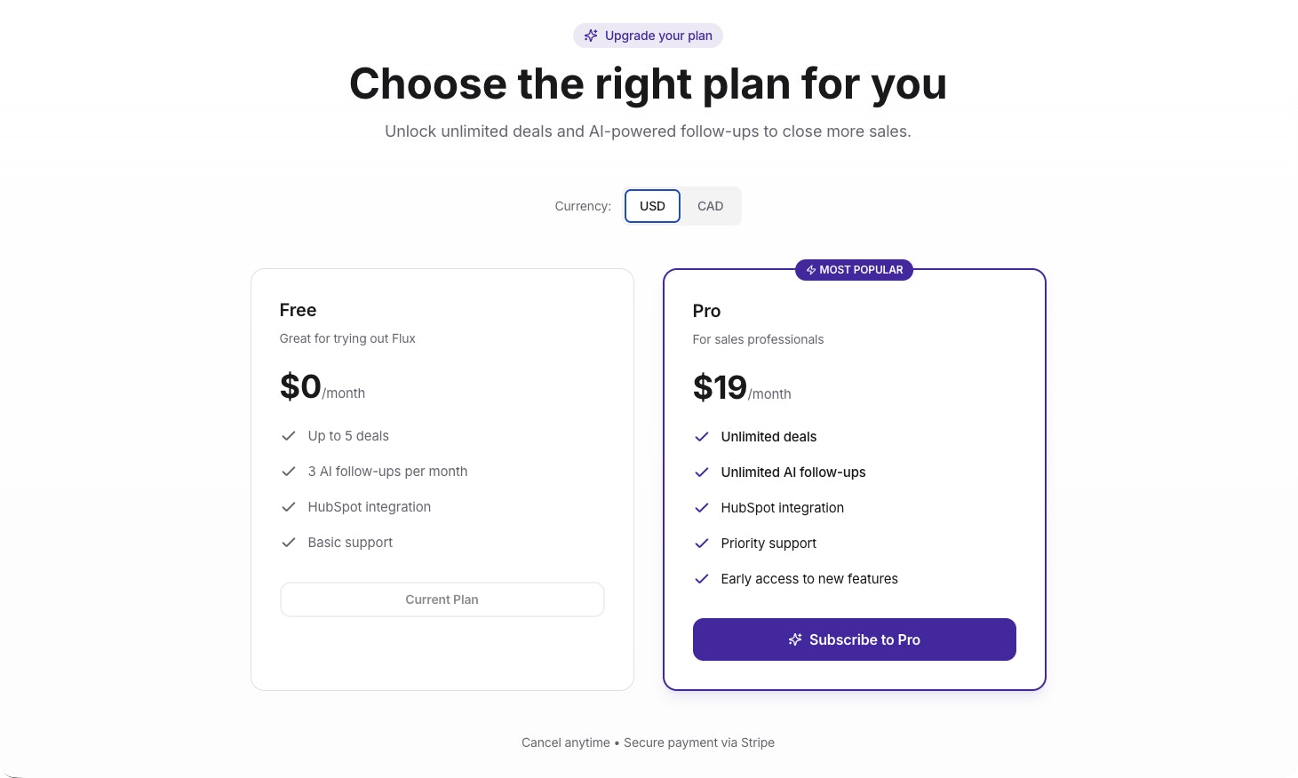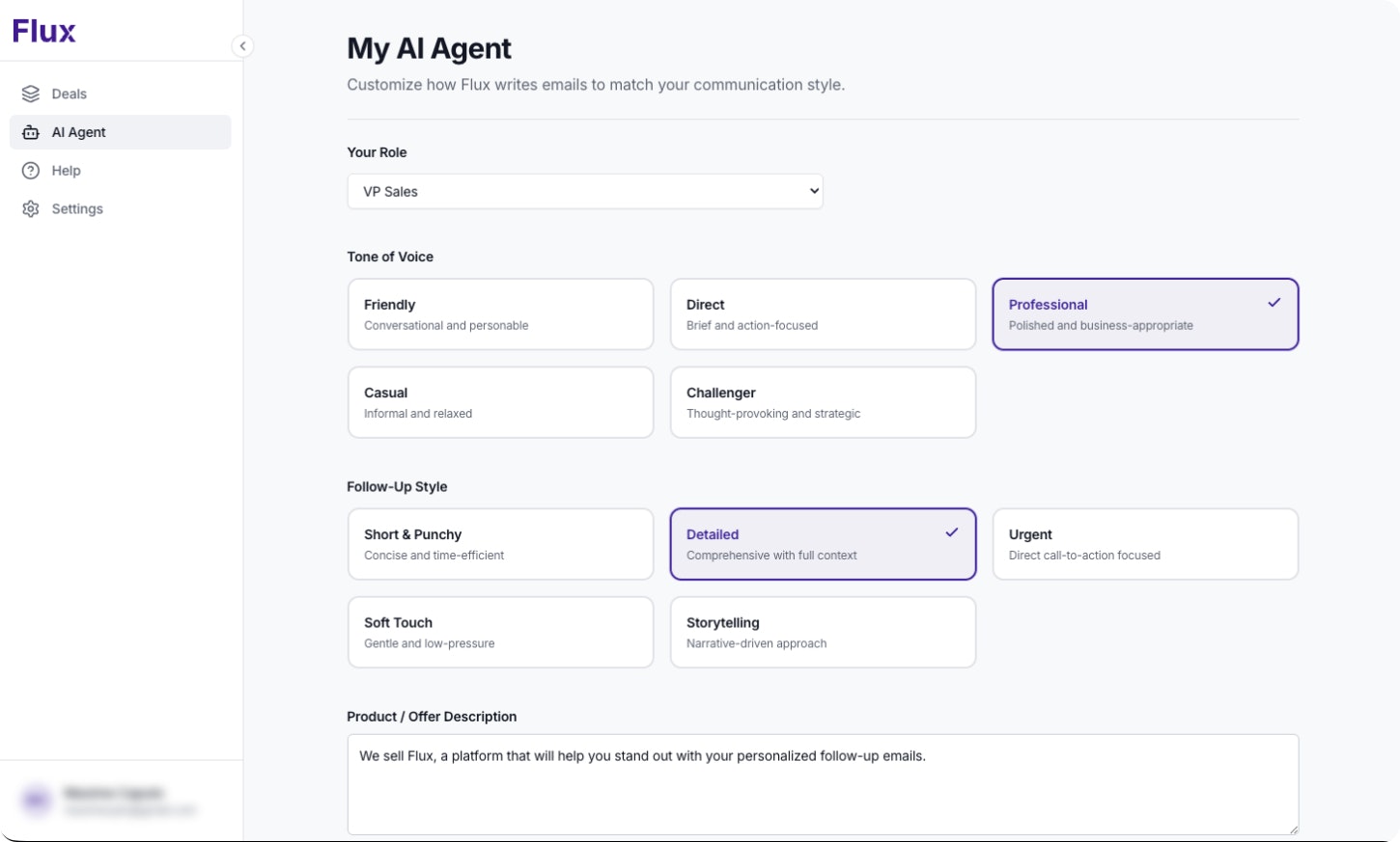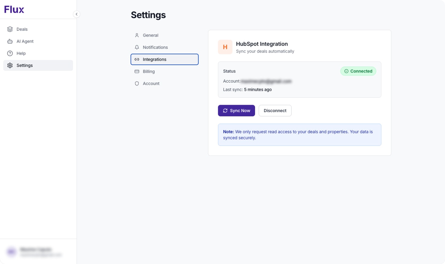 Flux automatically tracks inactive deals in your HubSpot pipeline and generates personalized AI follow-ups in seconds. Connect your account, identify stalled opportunities, and re-engage with better emails. Free for your first 5 deals.