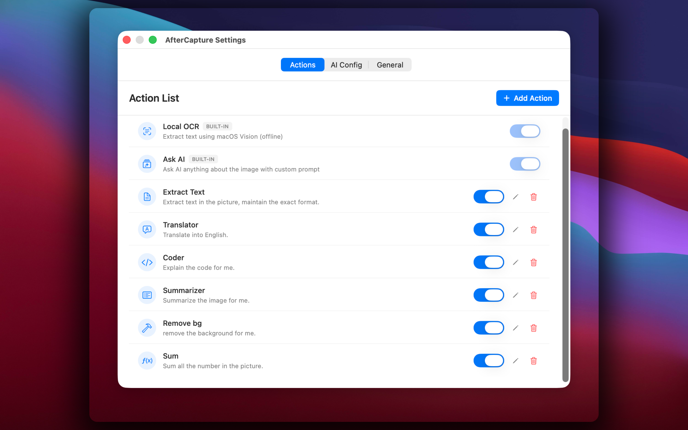 A modern macOS screenshot tool with AI capabilities, supporting local OCR, flexible AI dialogue, custom actions, and more