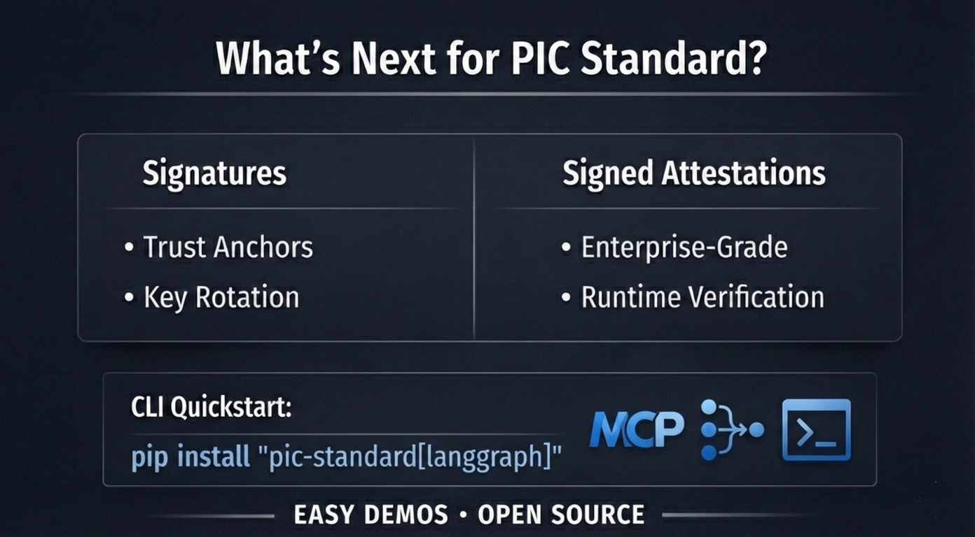 Open protocol that forces AI agents to prove their intent and back every important action with verifiable evidence, before anything dangerous happens. Quick benefits: - Stops prompt-injection disasters and hallucinations from turning into real money losses or data leaks - Works locally: no sending sensitive data to the cloud - Plugs right into LangGraph or your existing agent stack in minutes - MCP ready - Free & open-source (Apache 2.0): audit it, fork it, own it