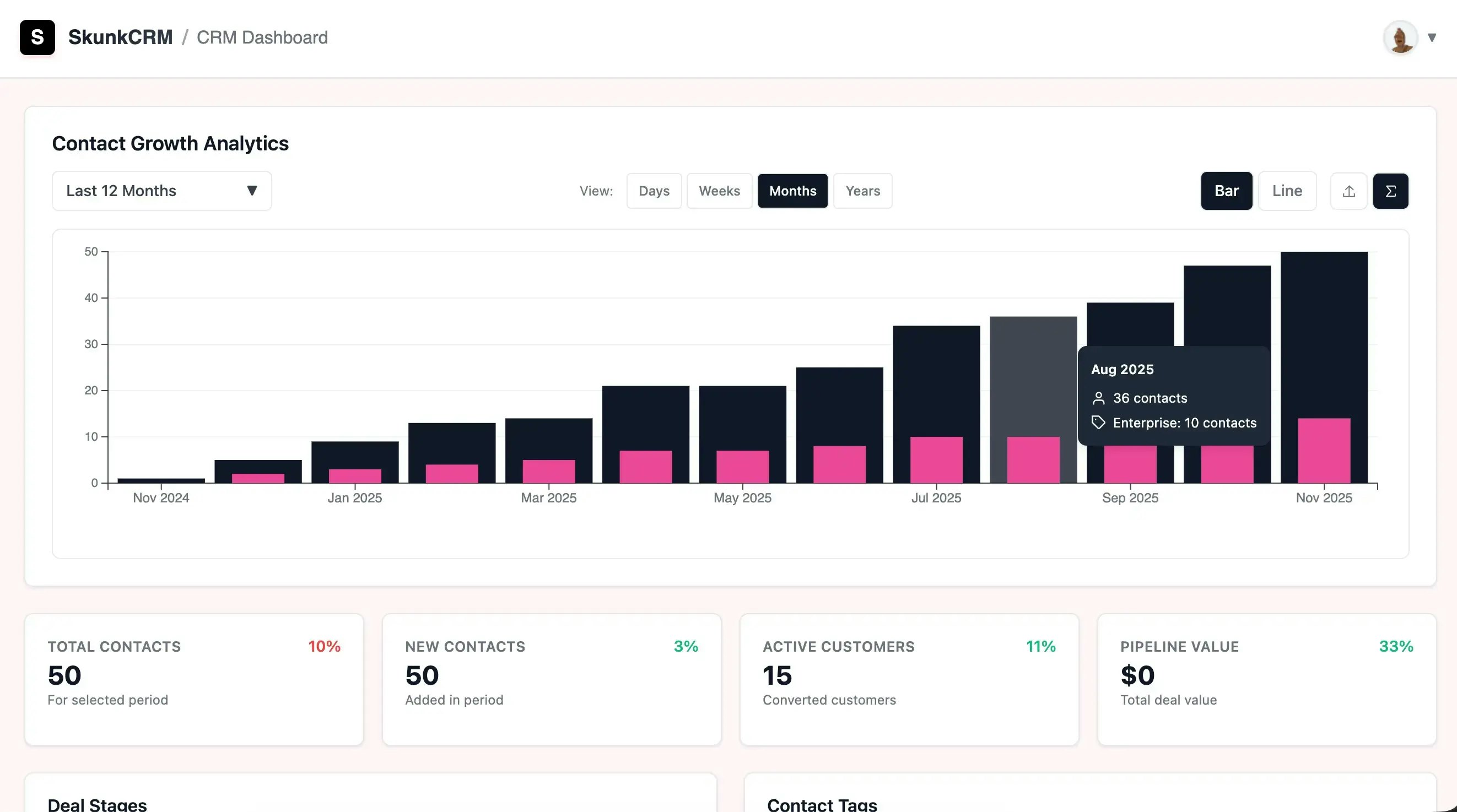 Stop losing deals and wasting time. SkunkCRM is a free, self-hosted WordPress CRM plugin to manage contacts, track deals, and grow your business. No hidden fees.