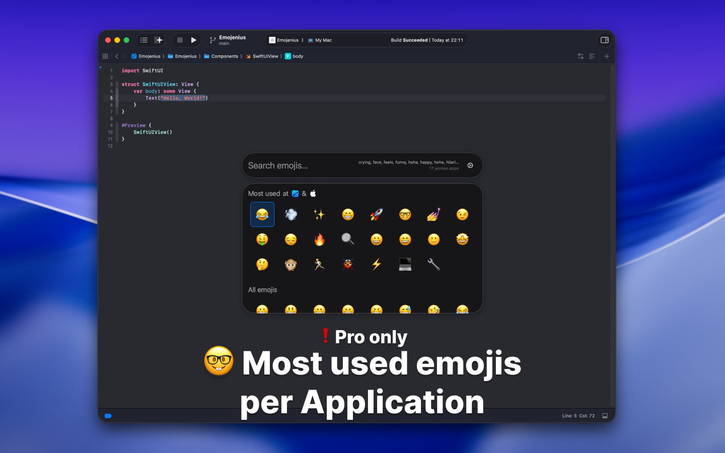 Emojenius is a fast, lightweight, offline, smart emoji bar designed to stay out of your way. Why Emojenius? ⚡️ Instant search: start typing, results appear immediately 🤓 Smart features: the bar remembers your most used emojis per application. 🏗️ Custom keywords: remap the keywords so the app speaks your language in terms of emojis. If you use emojis daily and care about speed and flow, I hope Emojenius makes your Mac a little more enjoyable to use 🙂