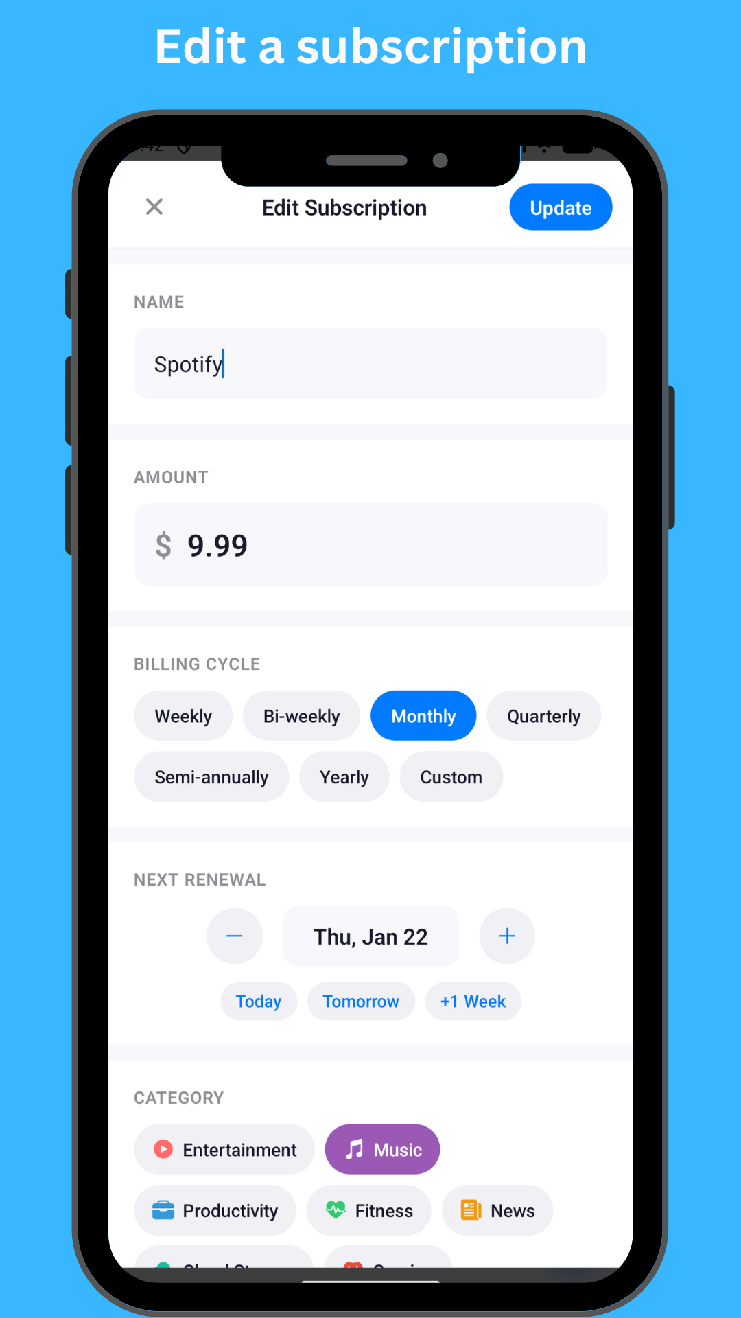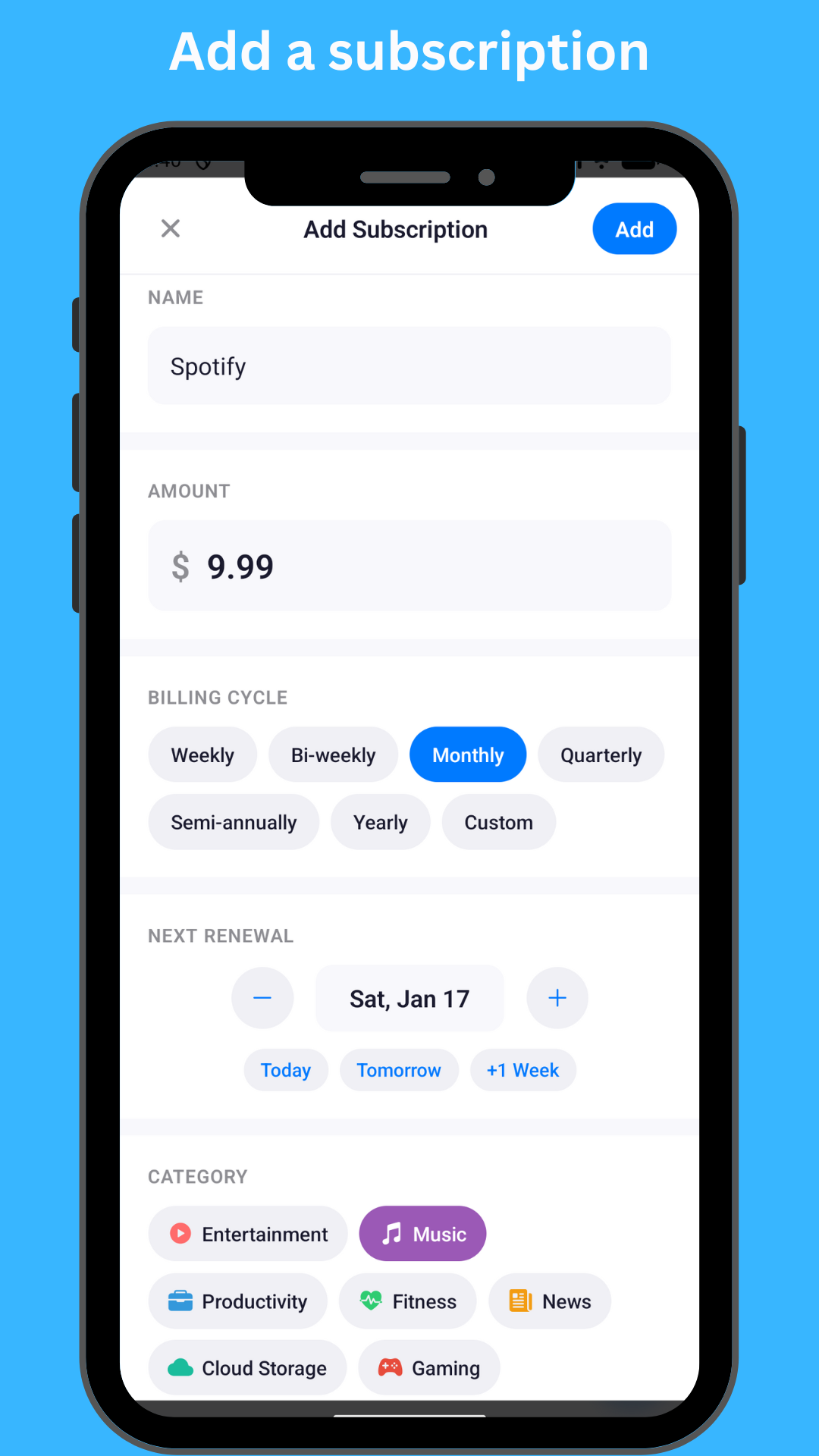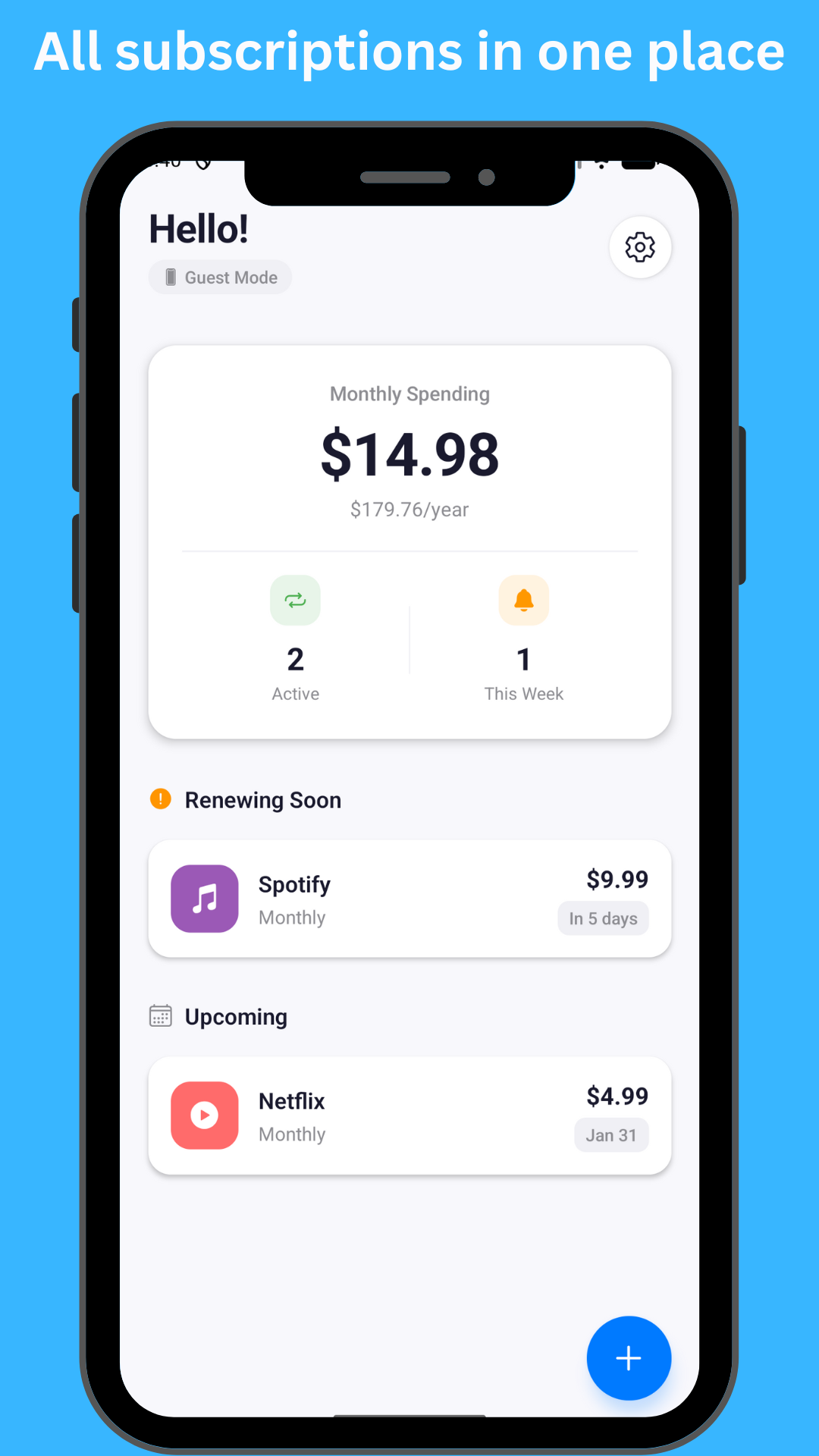 SubVault helps you track all your subscriptions in one place and avoid unwanted renewals. Add services, choose your billing cycle, set reminders, and get notified before you’re charged. Supports multiple currencies and flexible notification timing. Built for simplicity, privacy, and peace of mind.