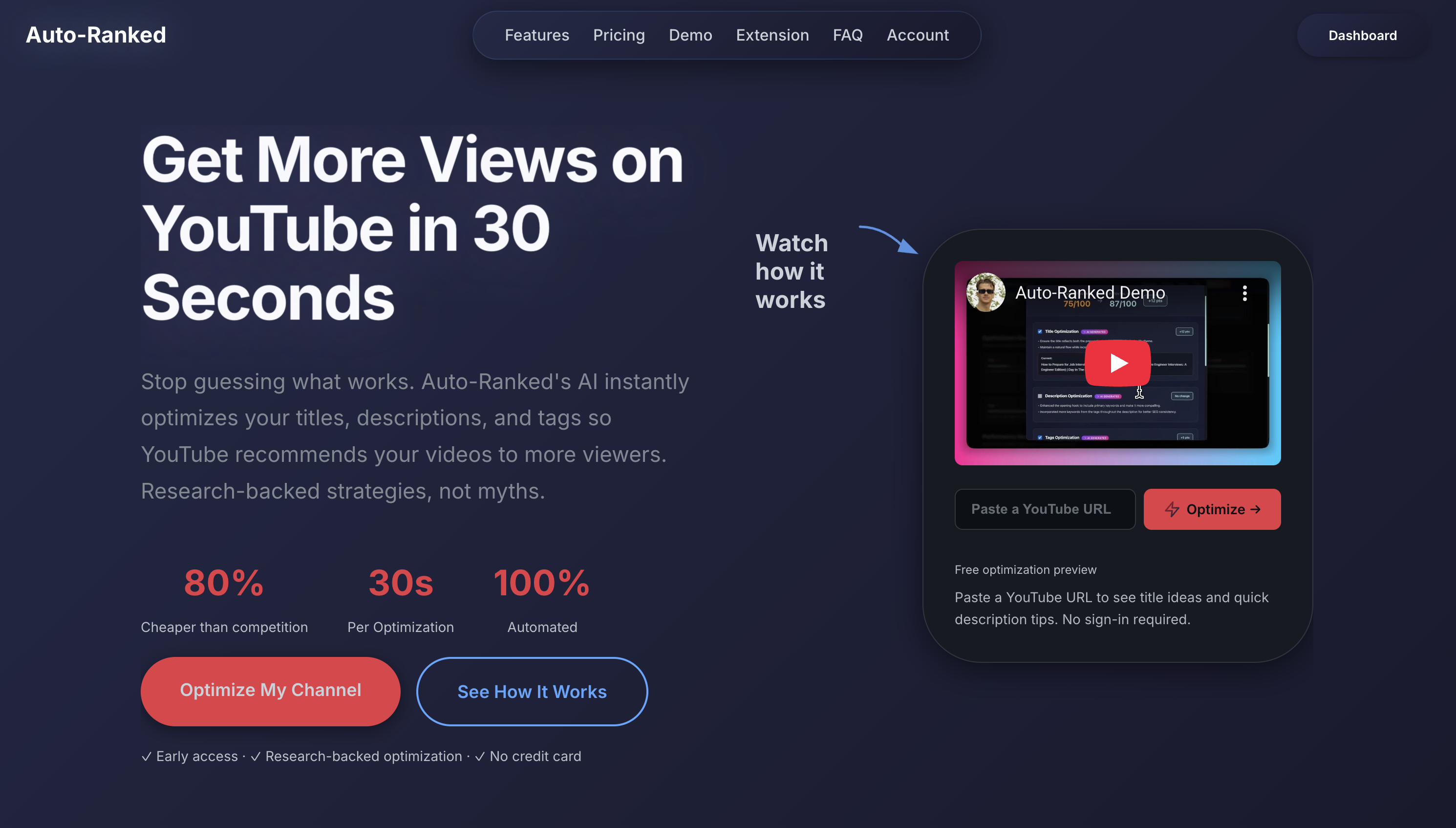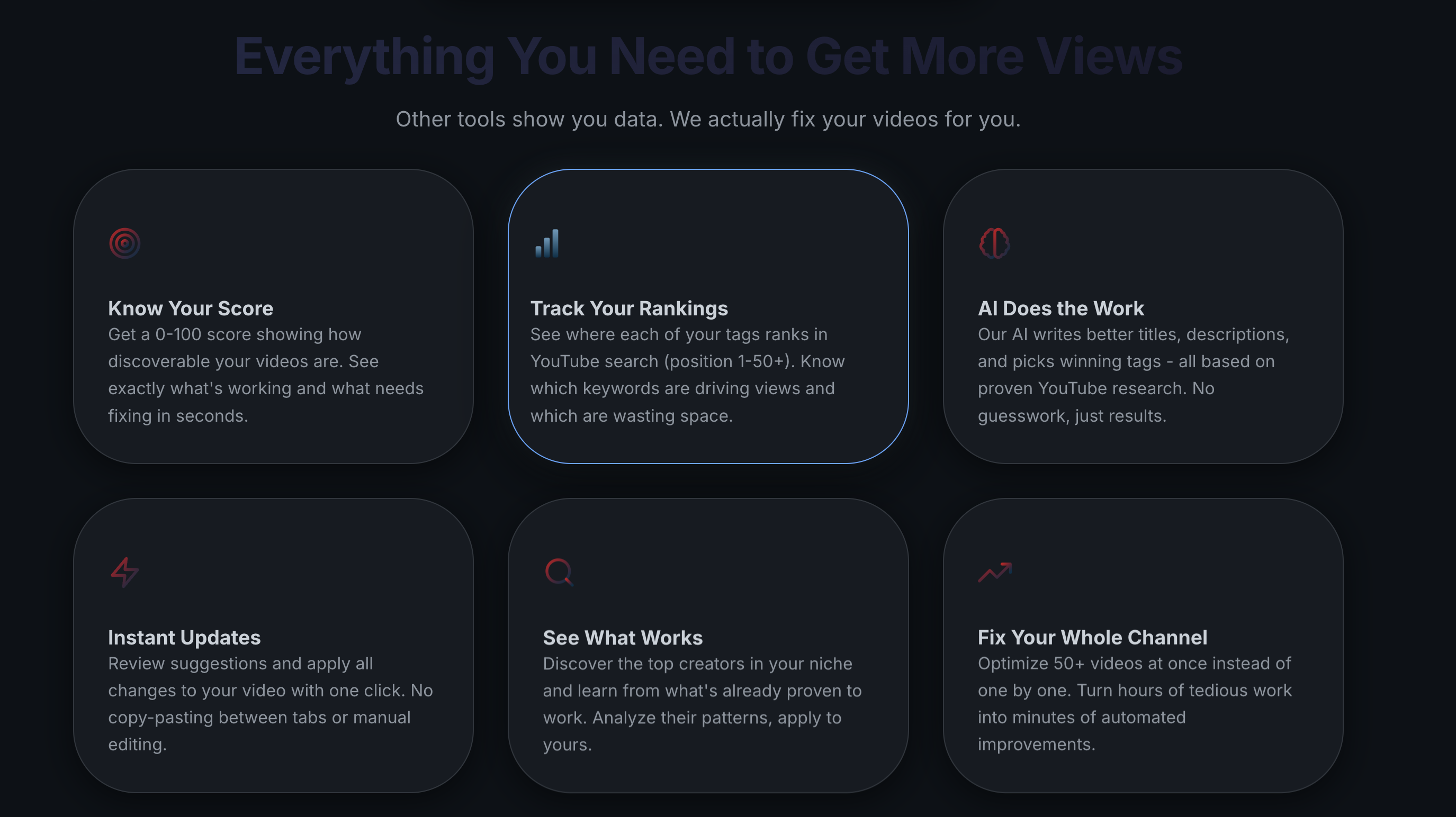 Auto-Ranked helps YouTubers get more views by fixing the most common growth bottleneck: titles and descriptions. It turns a video idea into clear, high-CTR titles and structured descriptions that work for both viewers and search. No SEO expertise needed, no bloated dashboards — just practical guidance that helps your videos get discovered faster. Built for new and growing creators who want results without overthinking.