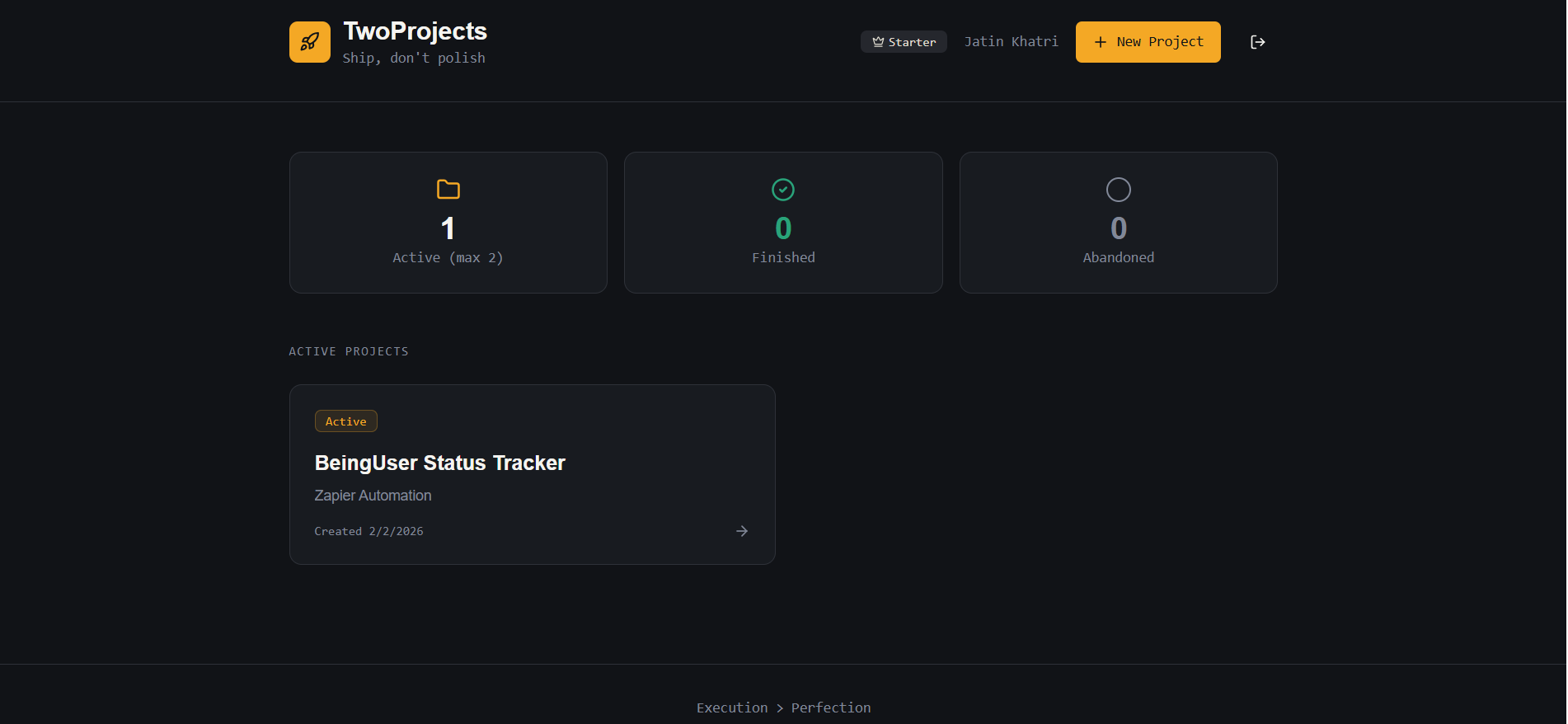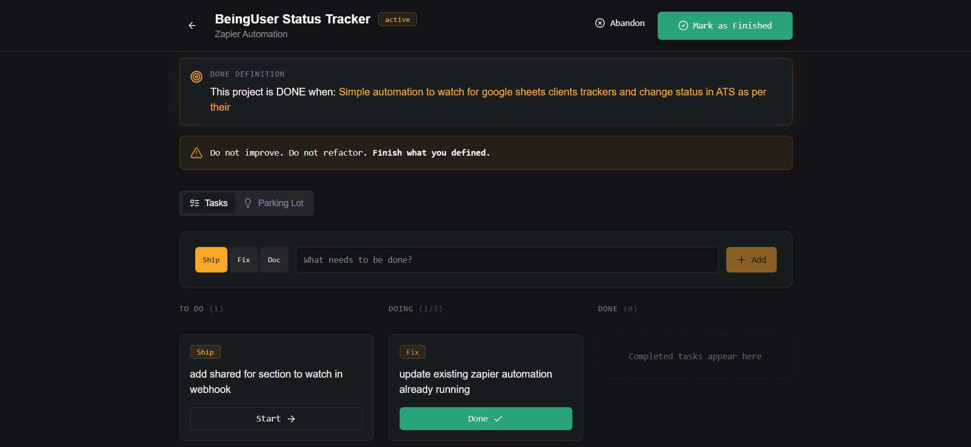 A minimal, opinionated project management app for solo builders who want to ship projects instead of endlessly refactoring.