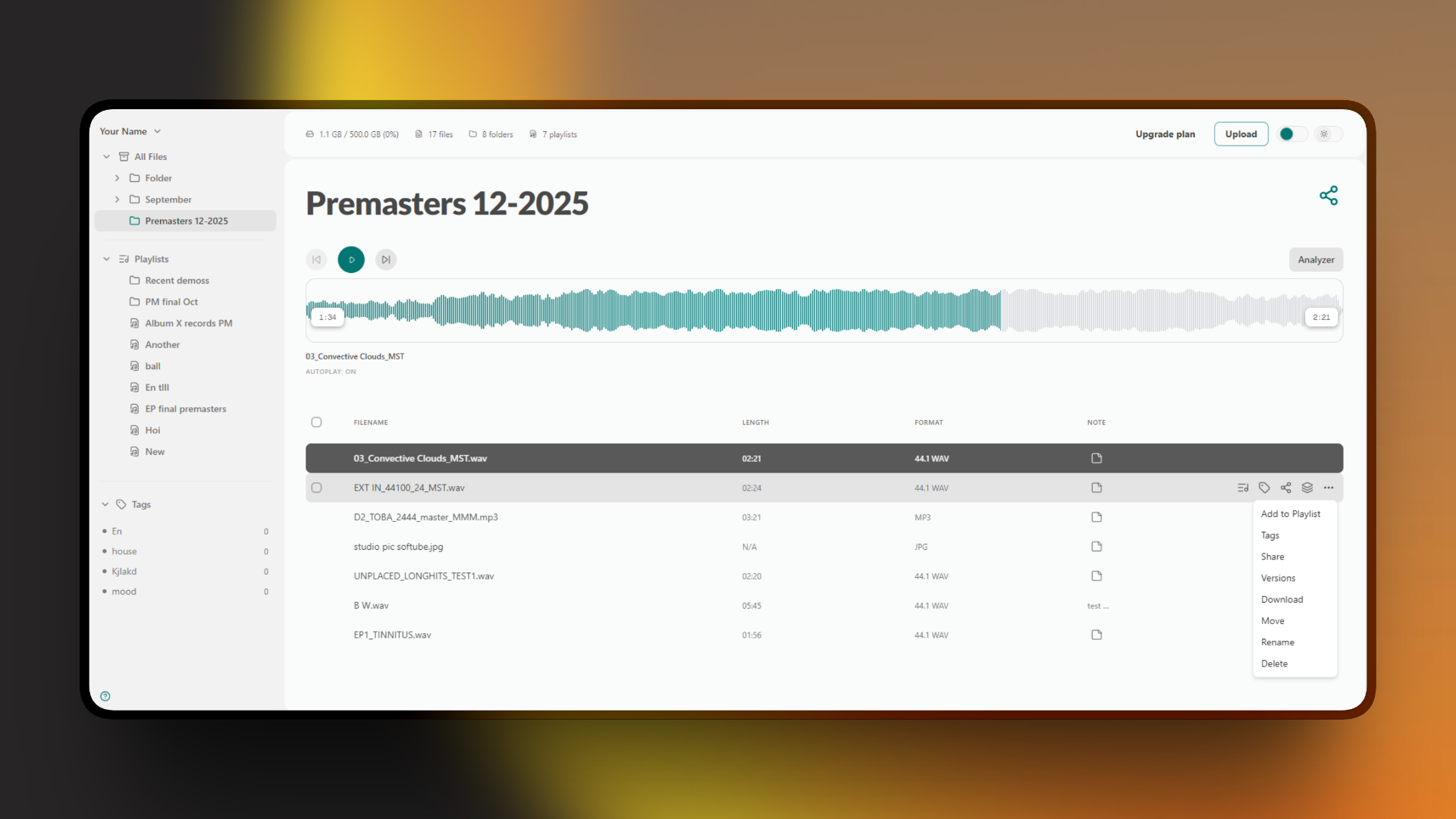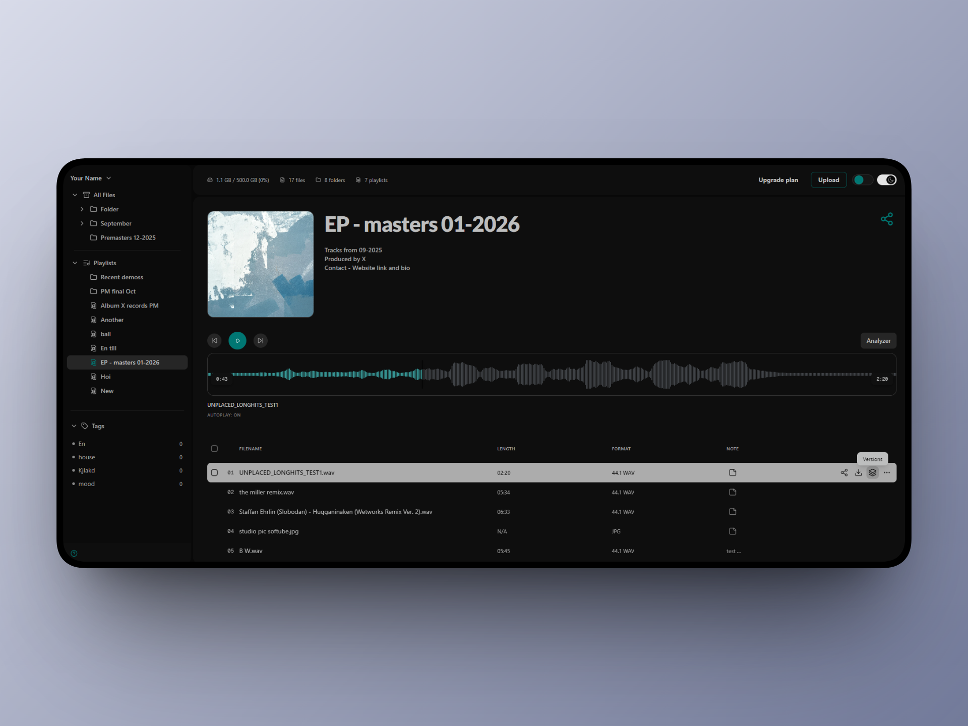 Echoe is a modern audio-first file sharing and collaboration platform built for music production workflows. Instead of juggling Dropbox folders, WeTransfer links, and email revisions, Echoe lets producers, engineers, and labels share deliveries or demos, stream uncompressed WAV files in the browser, collect timestamped feedback, manage versions, and stay notified about activity - all in one place. A fully featured free tier is available, with paid plans for larger storage needs.