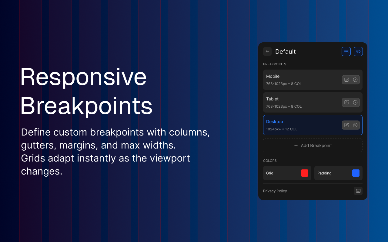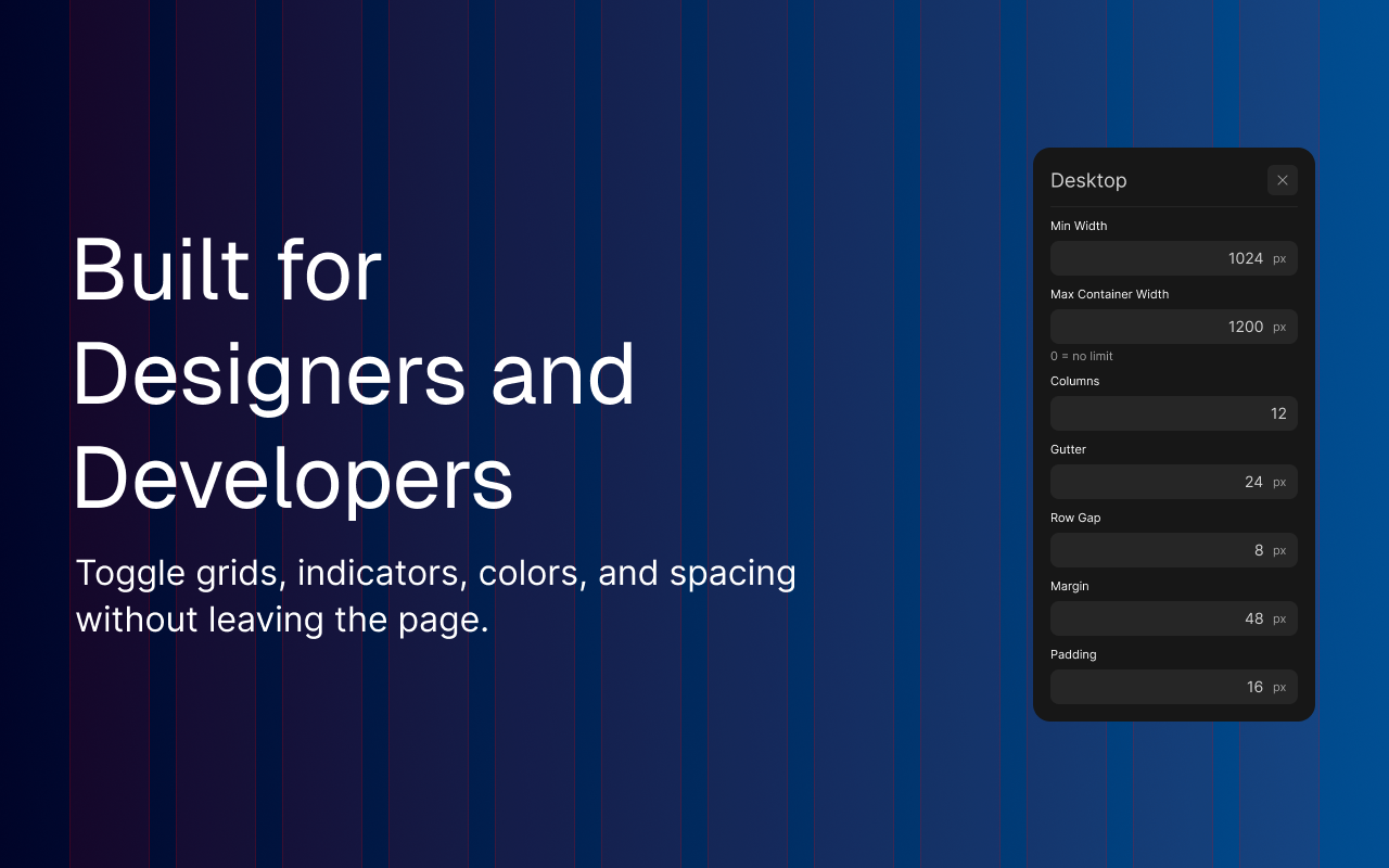 Grid Overlay Pro is a browser extension that helps designers and developers ensure pixel-perfect alignment by overlaying customizable grid systems on any webpage. Unlike static design tool overlays, it features responsive grid adaptation—automatically adjusting column widths and spacing when the viewport resizes, maintaining consistent proportions across any screen size.