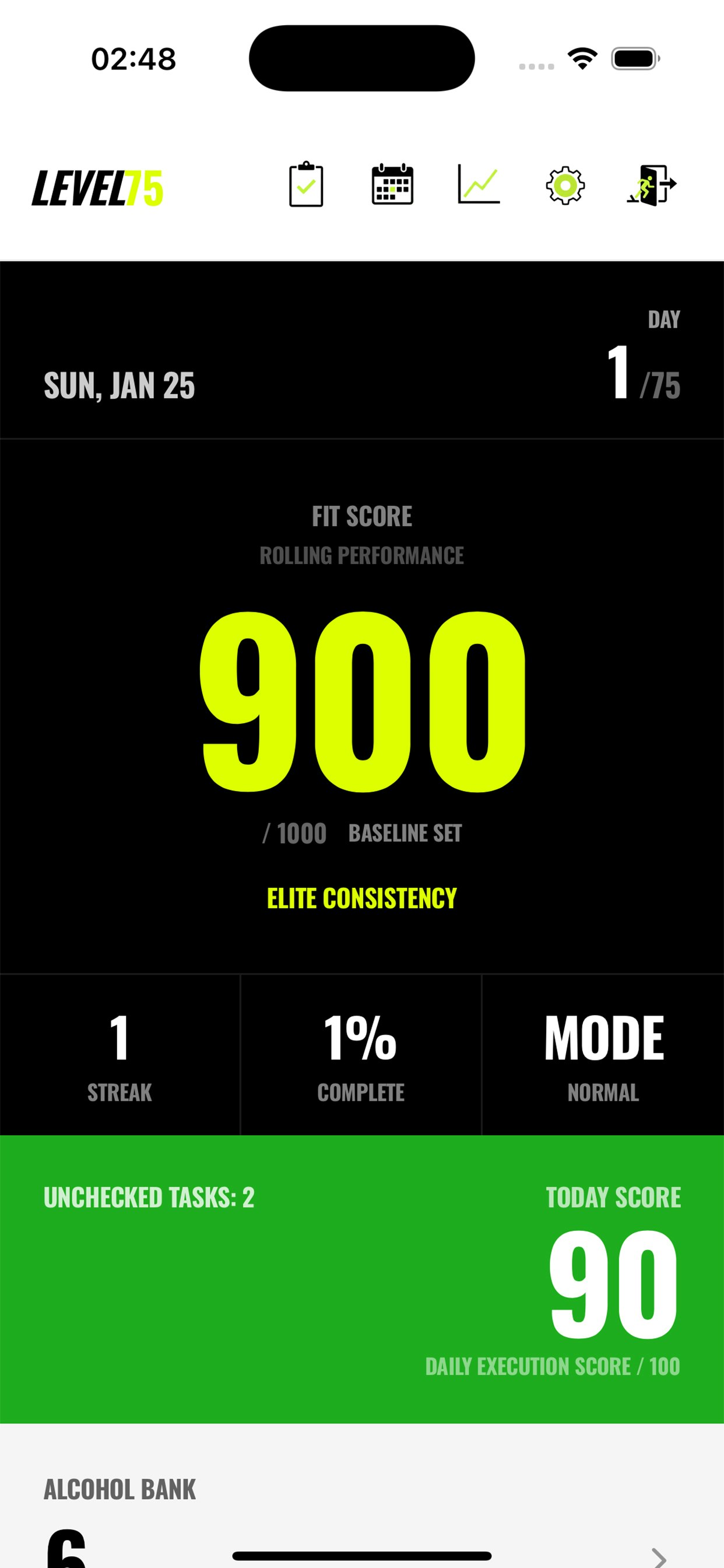 Build consistency through daily challenges, streaks, and progression. Level75 is designed to help you show up every day by making habits feel rewarding and motivating. Complete daily check-ins, track your progress, and level up as you build momentum over time. Features: • Daily challenges and check-ins • Track water intake • Level progression and milestones • Fast, reliable performance optimized for iOS • Secure data handling and modern infrastructure