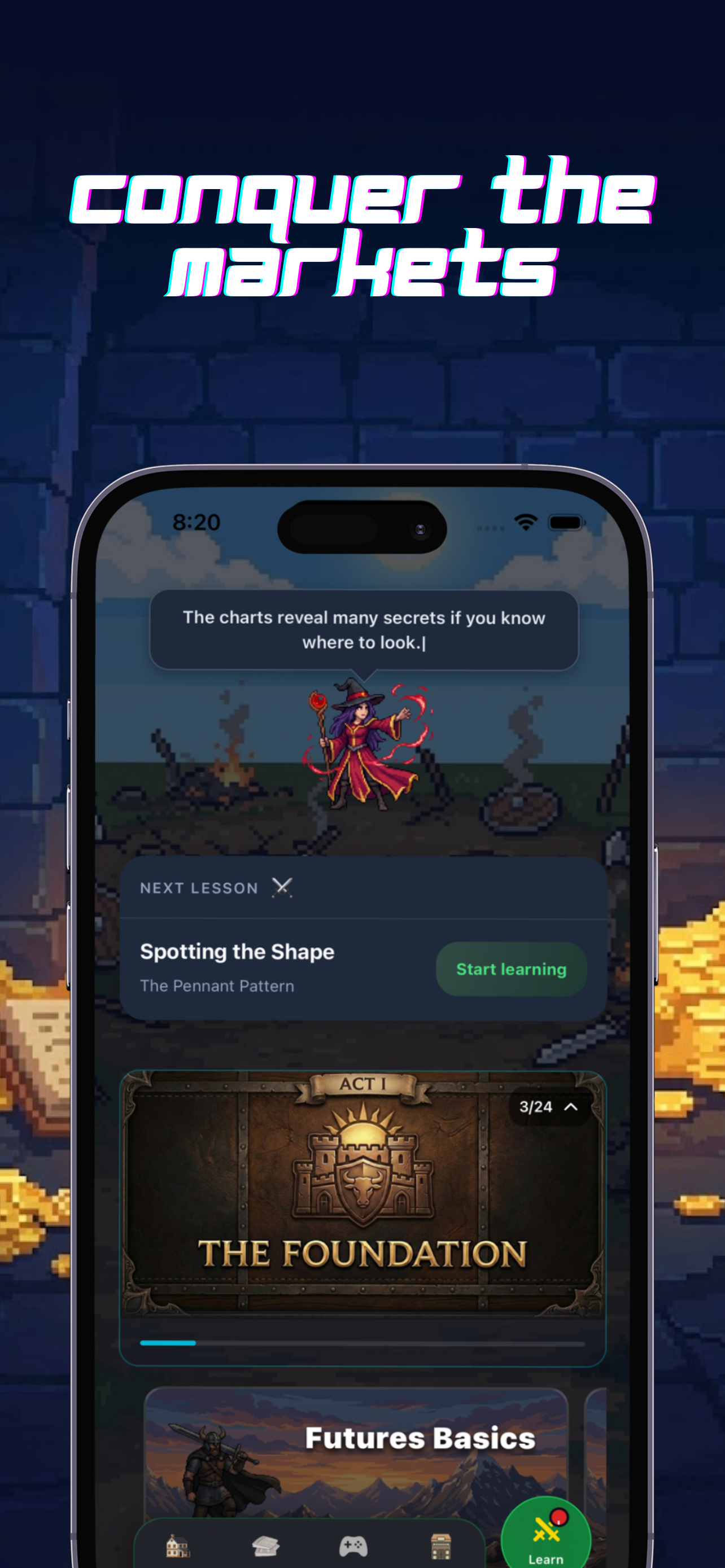 MarketDues is a gamified educational app designed to make learning futures trading, commodities, and indices actually fun. Instead of dry textbooks or complex charts, we use an RPG-style interface and interactive stories to help you master the markets.