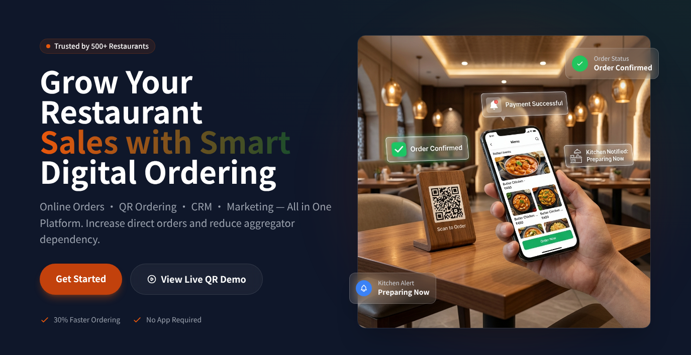 RestoPrime® is an all-in-one restaurant POS and management software for cafés, QSRs, and cloud kitchens. QR ordering, digital menus, table management & CRM. 0% commission. Book a free demo.