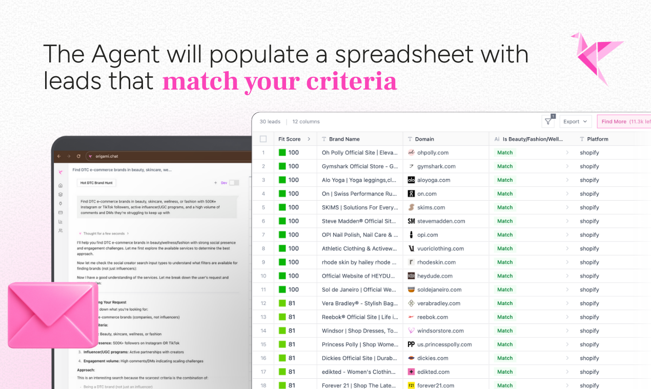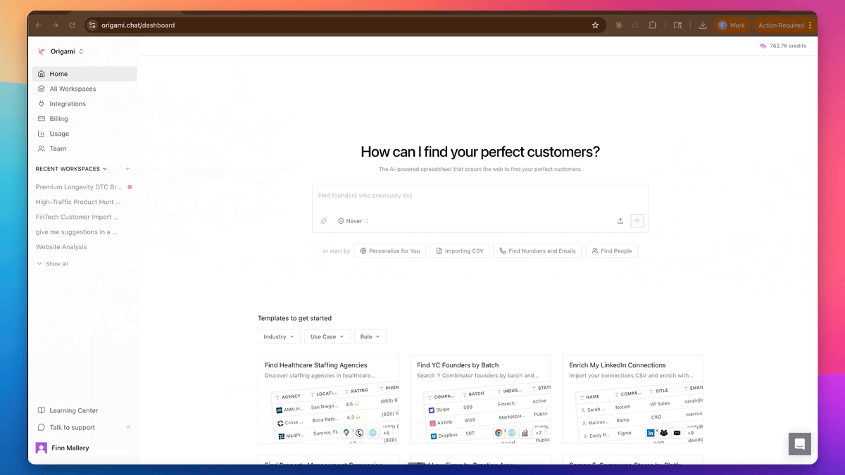 Provide a prompt and get your perfect leads. origami.chat has 100+ data sources - use it to find more of your perfect customers, enrich a CSV, or get decision makers. Try it out and get a lead list in seconds!