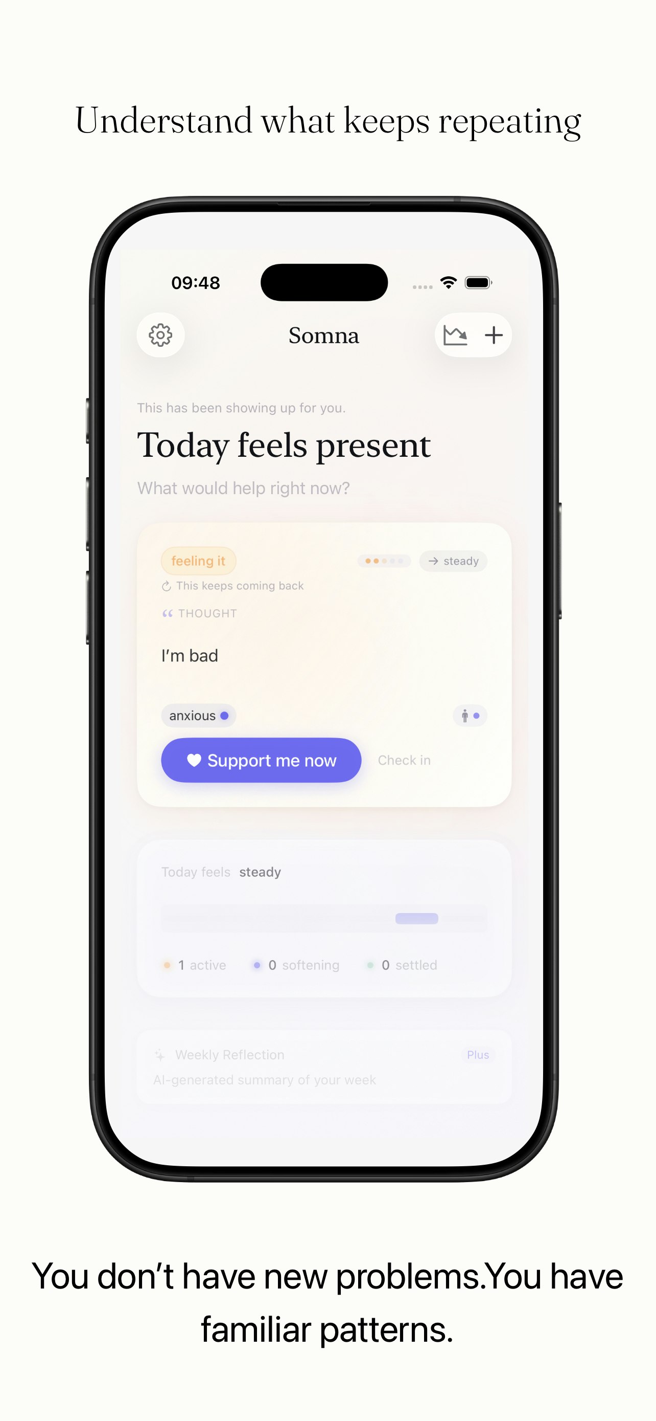 Most stress apps tell you to breathe. Somna helps you understand why you're stressed. Track triggers, spot repeating patterns, and break the loops that keep you stuck - all privately, on-device, with no account required. Think of it as a personal stress debugger.
