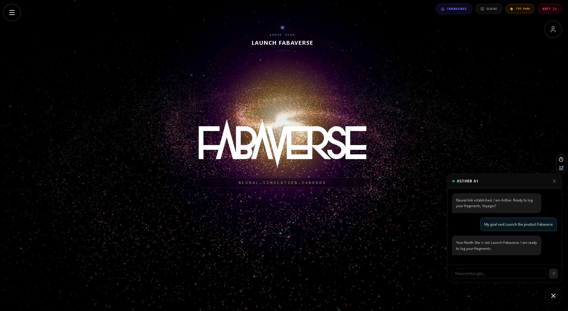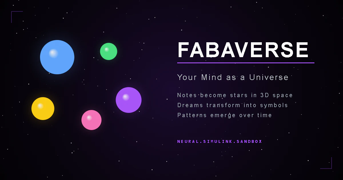 Fabaverse turns your mind into a 3D universe. 🌟 NYX: Thoughts as glowing stars. 🌙 ONEIROS: Jungian dream analysis via Gemini AI. ☀️ HEMERA: Goals orbiting like planets. ⚔️ HERACLES: Action Forge. Tasks as divine mandates. 🤖 ASTHER: AI companion with memory in YOUR database. 💨 ECHO: Nervous system calibration. 👁️ EREBUS: Shadow work detecting avoidance. 🧠 ATHENA: High-level strategic insights. Built by a mechatronics engr to solve cognitive scattering through industrial-grade architecture.