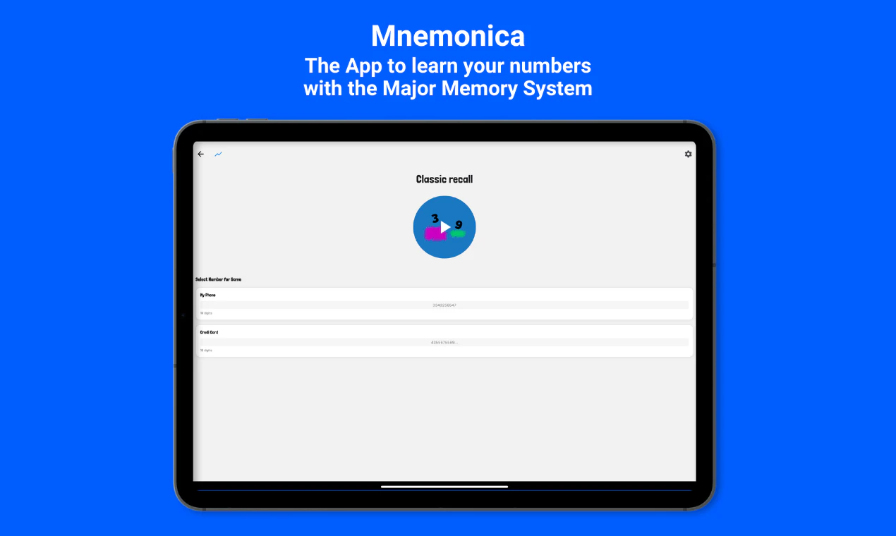 Mnemonica is a simple app to help you remember numbers. It uses the Major Memory System. You upload your own pictures and link them to digits. Then, you play short games to test your recall. Learning this takes real work. The app won't magically fix your memory. But it gives you a simple way to practice. See what you miss and track your progress. You only pay once. No monthly fees. Available for Apple and Android.