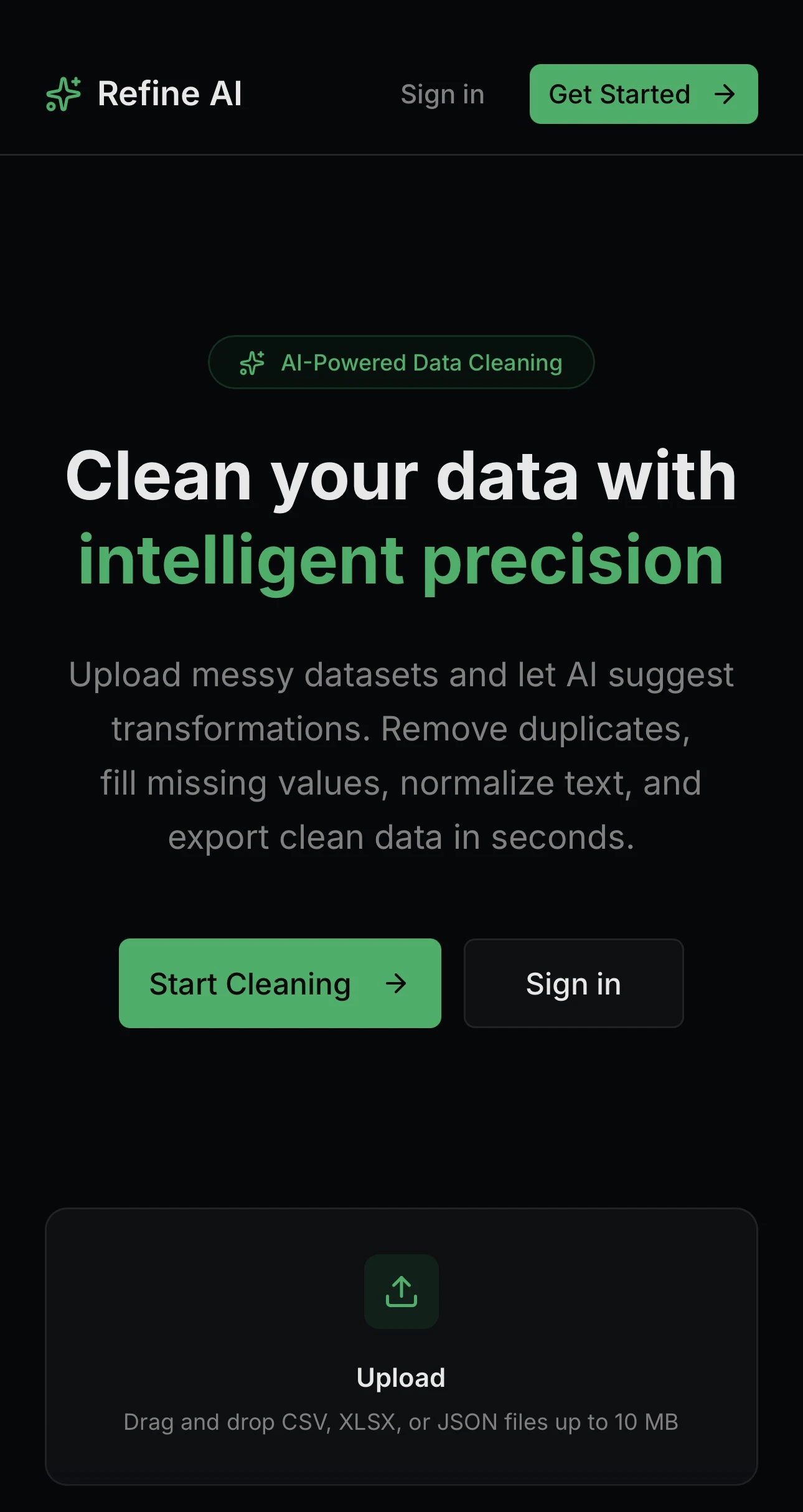 AI-powered data cleaning and transformation tool. Upload, analyze, and refine your datasets with intelligent suggestions powered by Gemini AI.