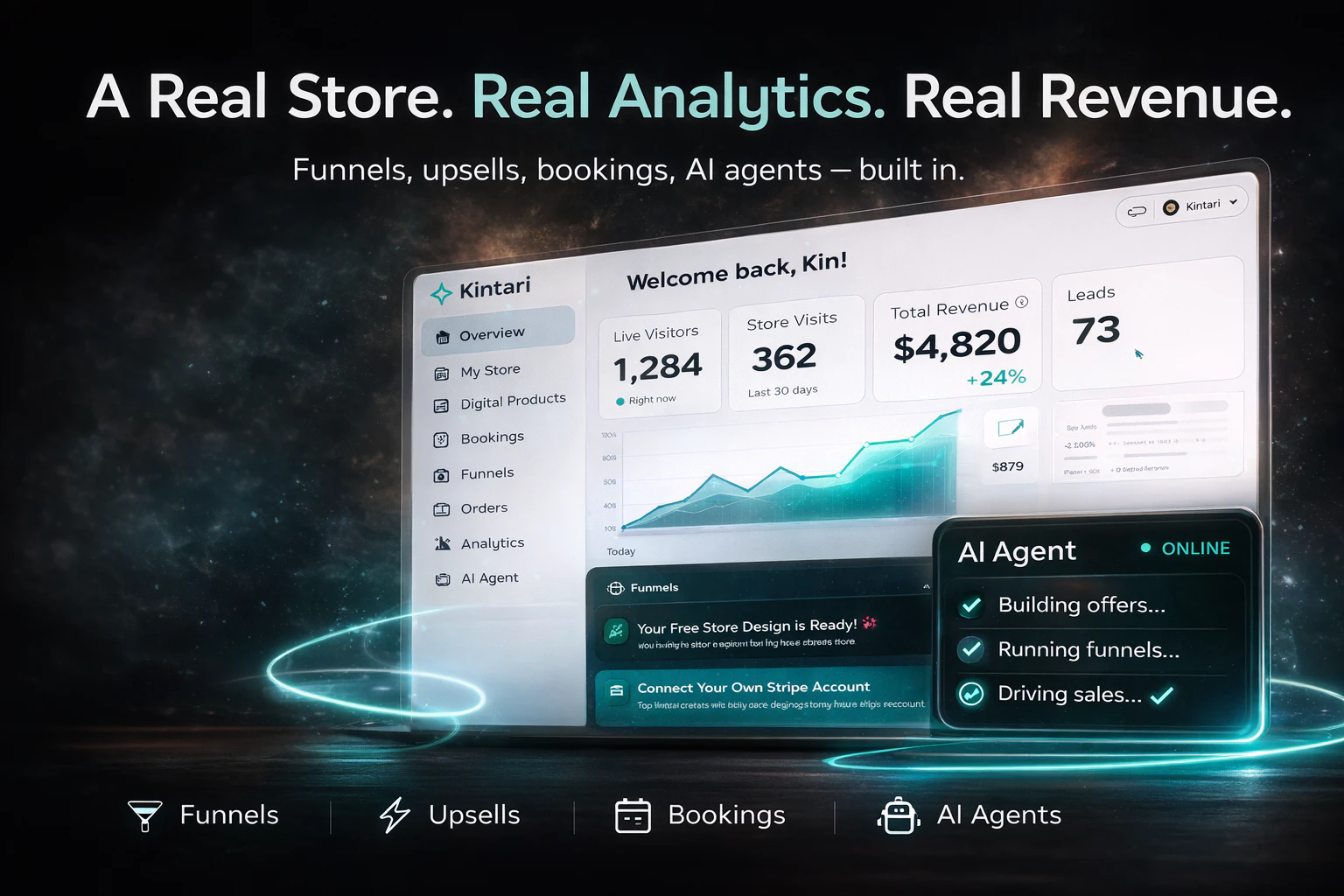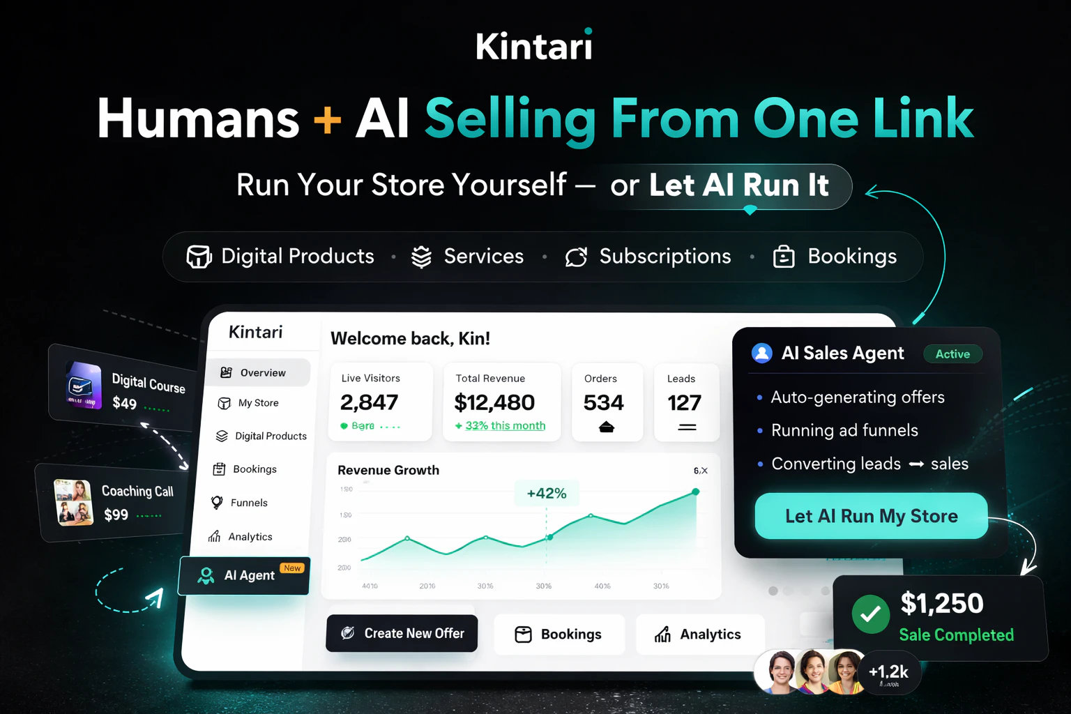 Kintari is a social store platform that lets creators sell products, services, subscriptions, and bookings through one powerful link. What makes it different? You can run your store yourself — or connect AI agents that create offers, build funnels, and manage sales automatically. It’s built for the future of commerce where humans and AI monetize together.