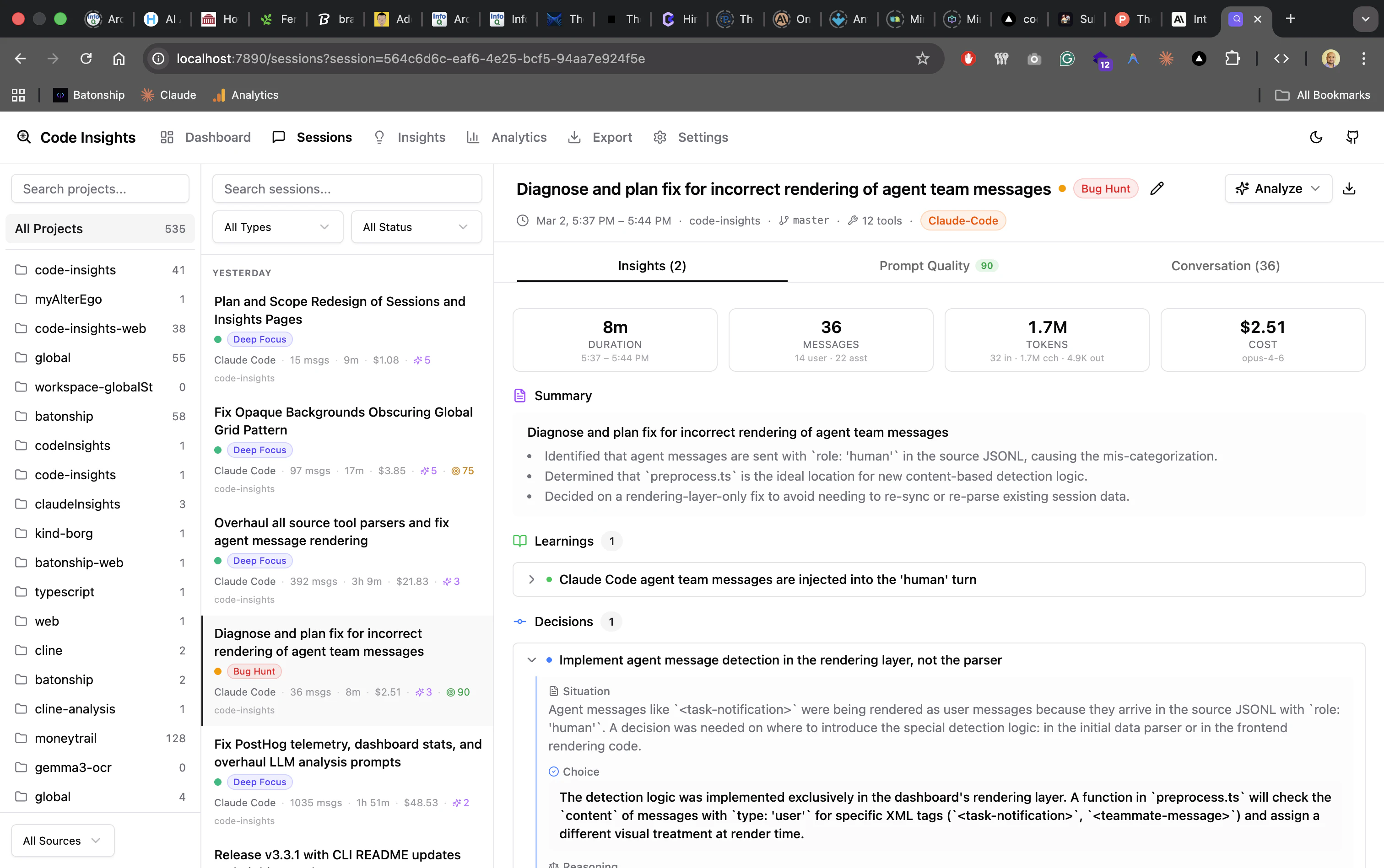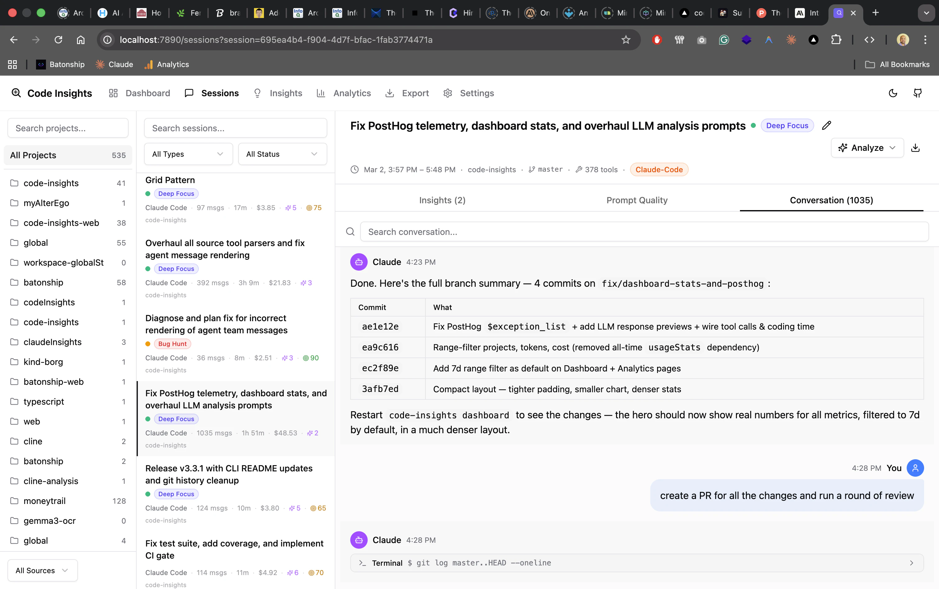 Free, open-source CLI that parses sessions from Claude Code, Cursor, Codex CLI, and Copilot CLI into a local SQLite database. Terminal analytics + browser dashboard with LLM-powered insights. Fully local - no accounts, no cloud, no data leaves your machine.