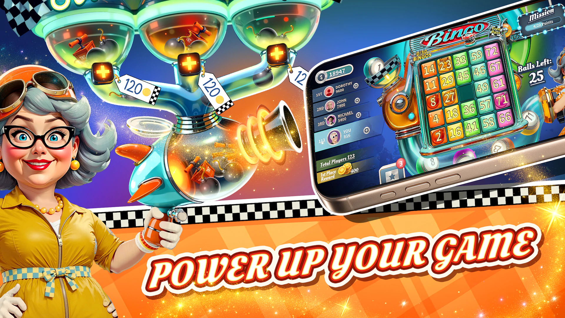 Retro bingo with mini-games, city building & leaderboards