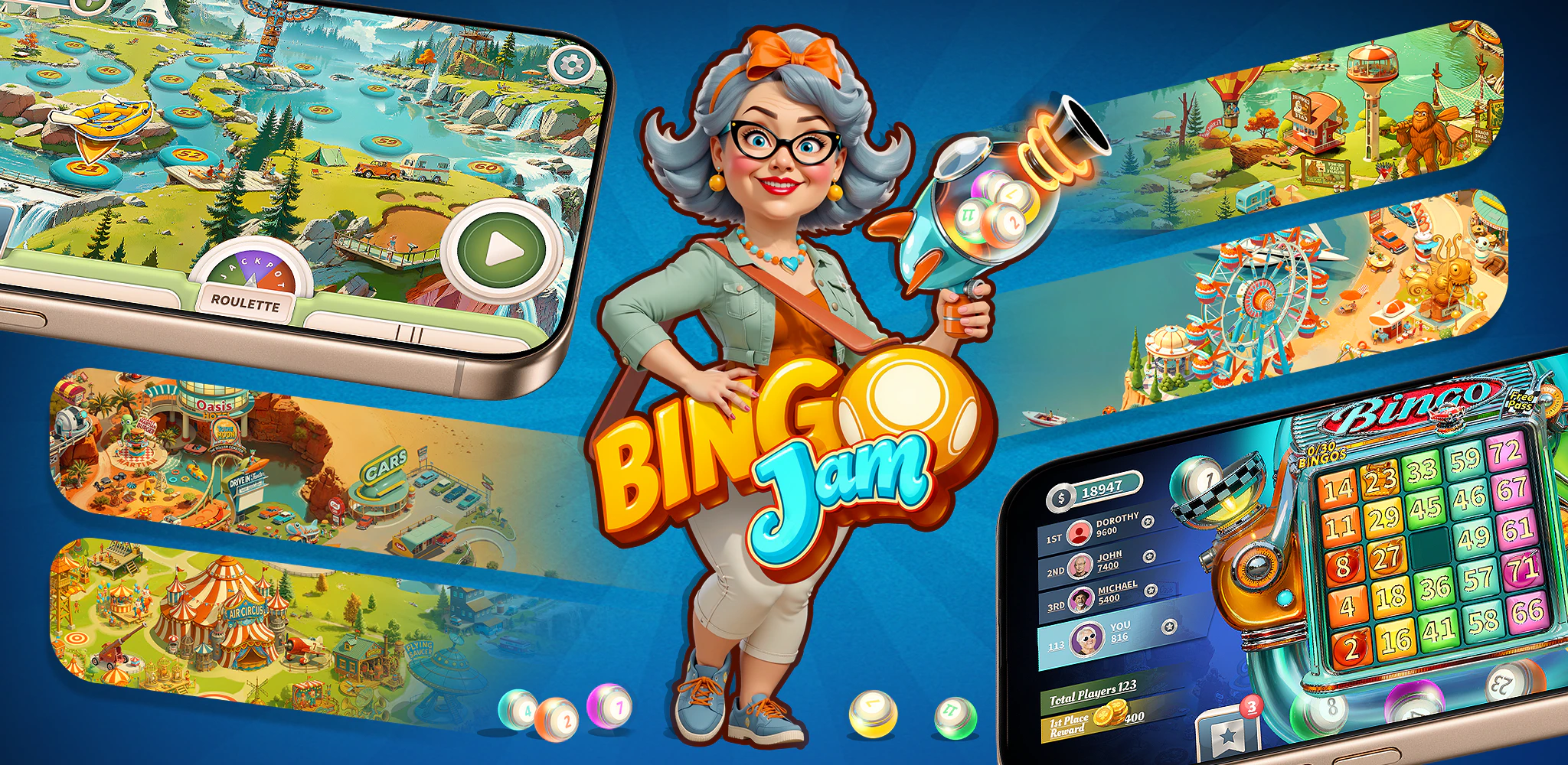 Bingo Jam is a retro 60s/70s USA travel bingo game built around constant competition. You play classic bingo, jump into dice-based mini-games (like board-game style races), climb leaderboards, and even build your own retro city! The game is packed with beautiful collections, fun easter eggs, and nods to classic movies. It’s truly free-to-play with no hard paywalls. You only use optional IAPs if you want to speed up progress.