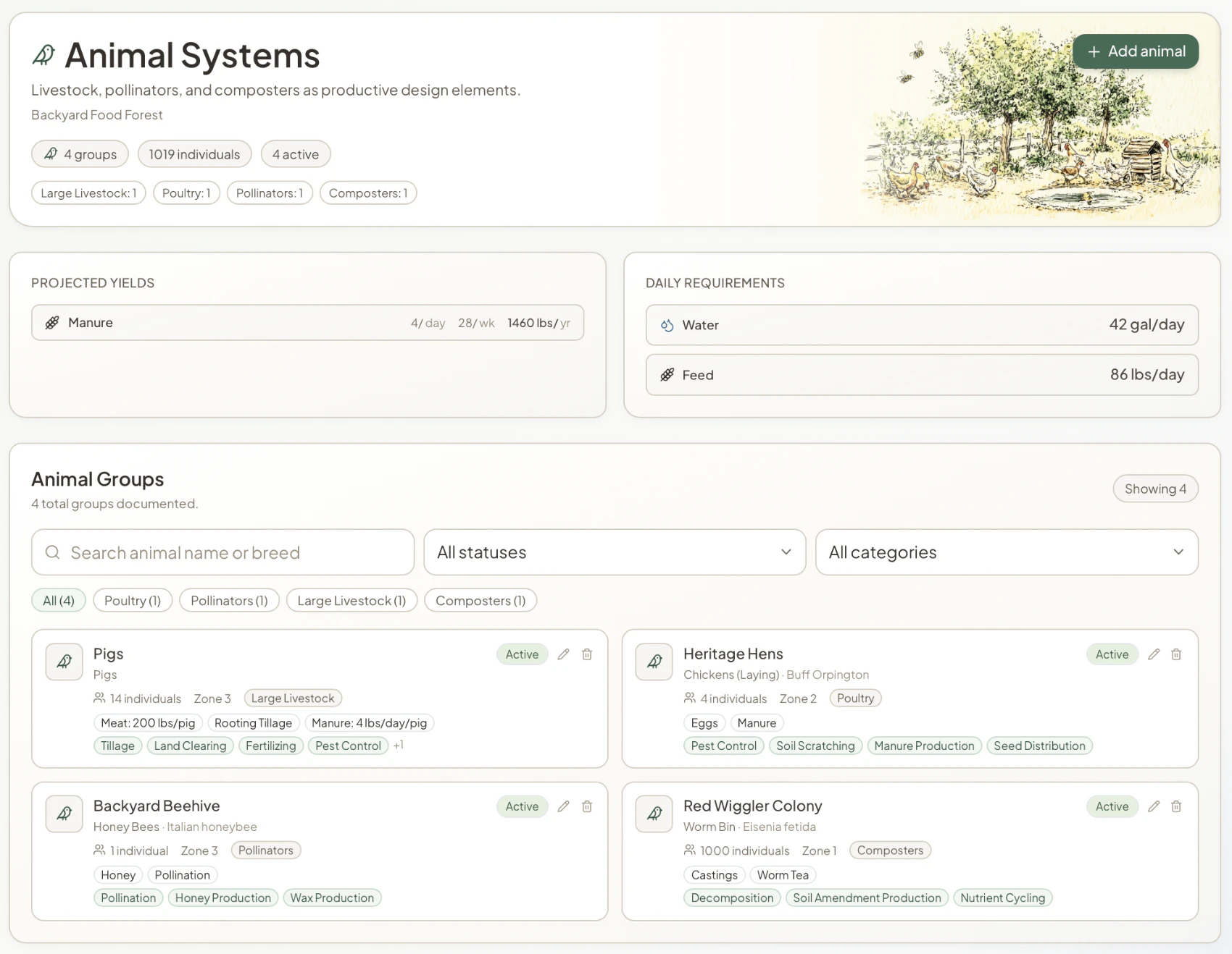 PatternBase is permaculture design software for food forest planners, guild designers, and homesteaders. Visual guild designer, climate-matched community, and multi-year perennial timelines. Free to start.