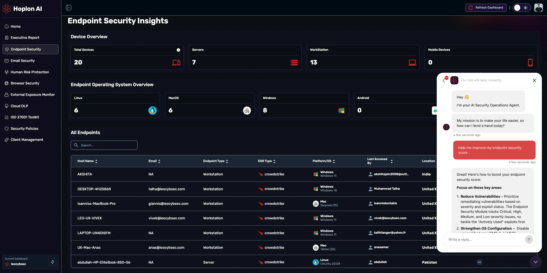 Experience Hoplon AI Agents for human conversation with superhuman protection always on. Simplify your cybersecurity and compliance journey today.