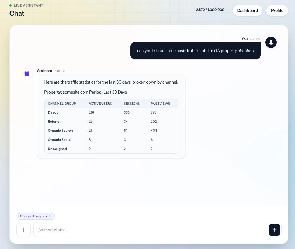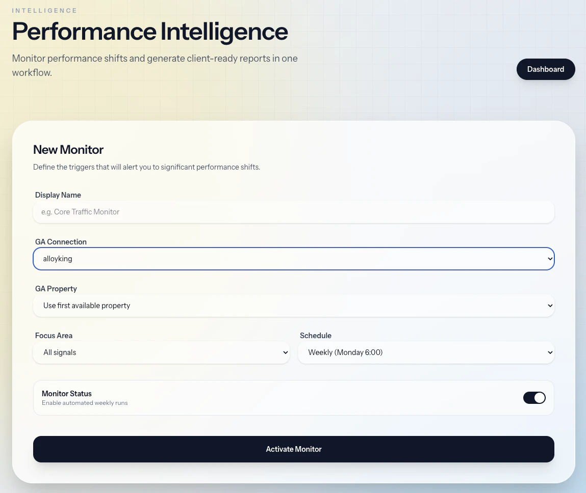 Agent GA gives agencies a monitor-first workflow for Google Analytics: detect anomalies, understand what changed, investigate with context, and create recurring client-ready PDF reports without rebuilding the same deliverable every week.