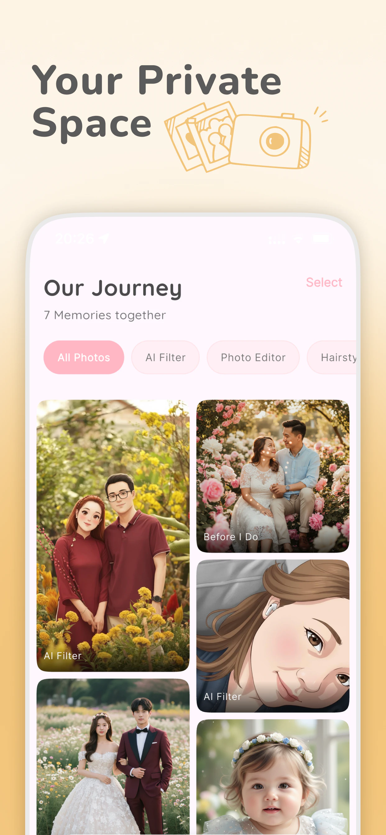 AI-powered couple app for tracking your love journey, exploring compatibility, and creating magical AI portraits.