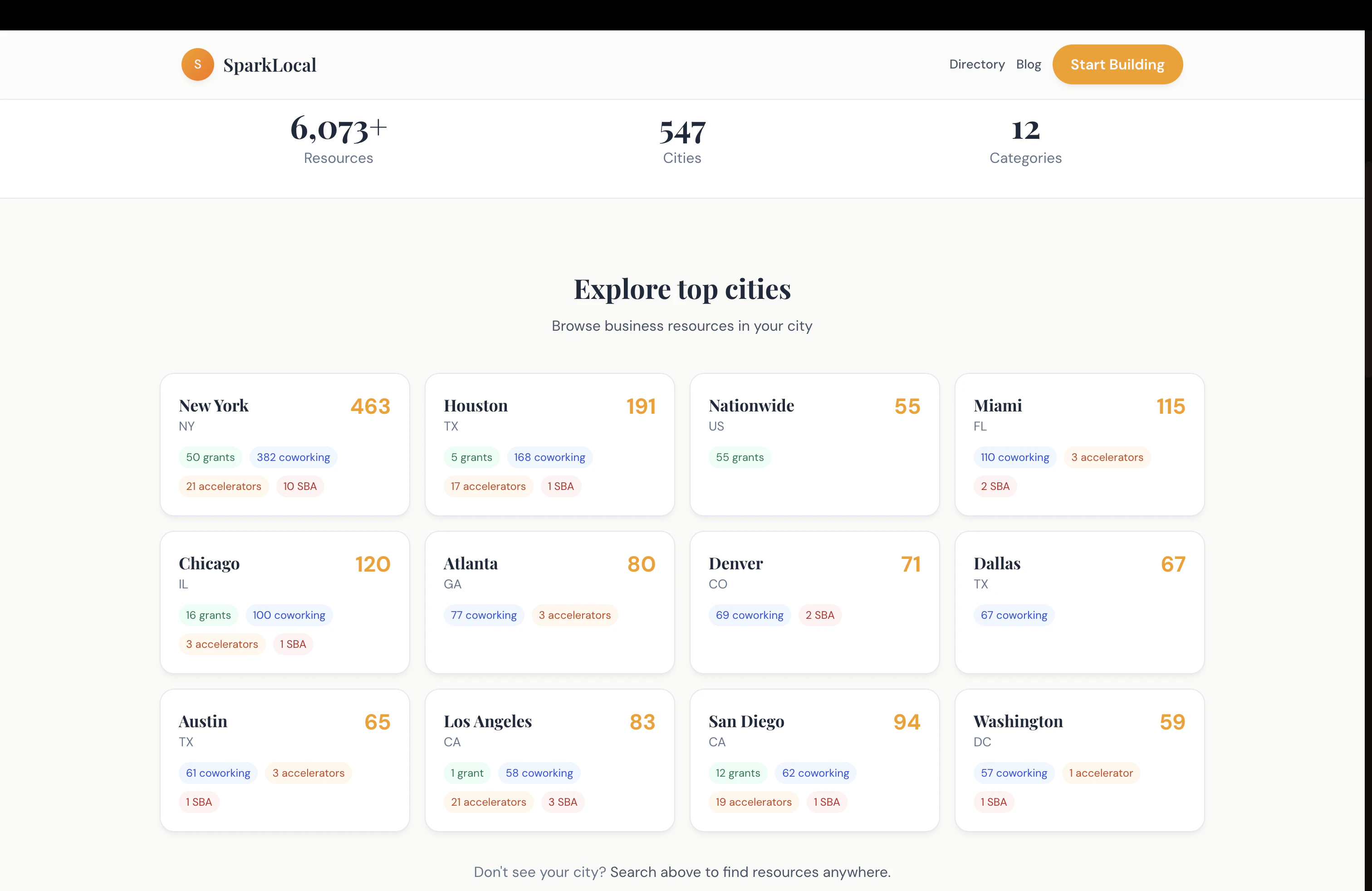 Want to start a business in your community? Answer questions about your skills, budget, and location, and SparkLocal's AI generates 4 personalized business ideas rooted in your local market. Go deeper with viability scoring, market research, financial projections, a launch checklist, and resources matched to your city. Then generate a pitch deck, landing page, and social graphics. Behind it all: a free directory of 6,000+ local business resources across 547 US cities. Start something local.