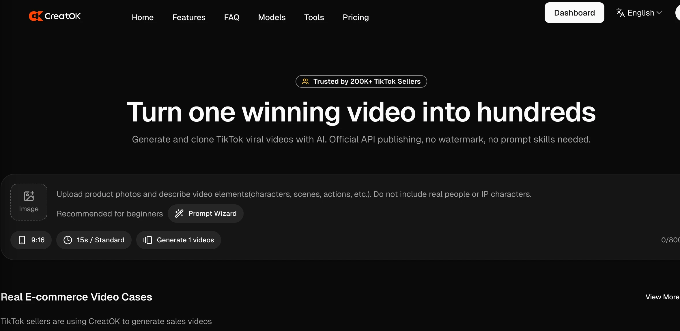 CreatOK is an AI TikTok e-commerce video generator based on Soar, Wan, Seedance, VEO, Nano Banana Pro, Kling and so on. You can create TikTok viral videos in 2 ways: AI-generated original videos, One-Click viral cloning. Official API publishing, no watermark, no prompt skills needed.It's trusted by 200K+ TikTok sellers worldwide. No watermark, unlimited quota. Key Features: Viral Discovery, Text-to-Video, Video-to-Video (Viral Replication), Consistent Characters.
