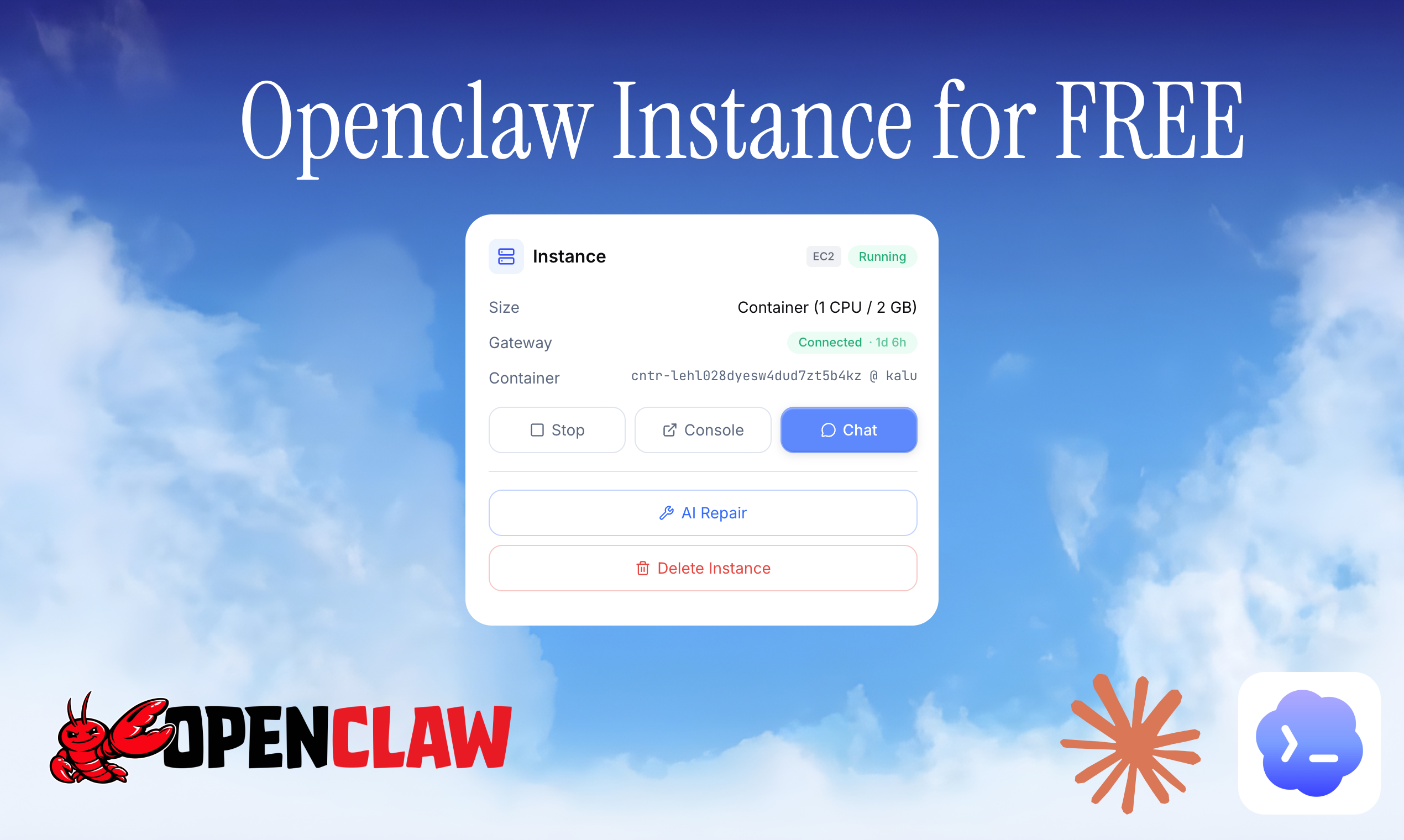Your own OpenClaw instance for $0/mo + free AI usage offer