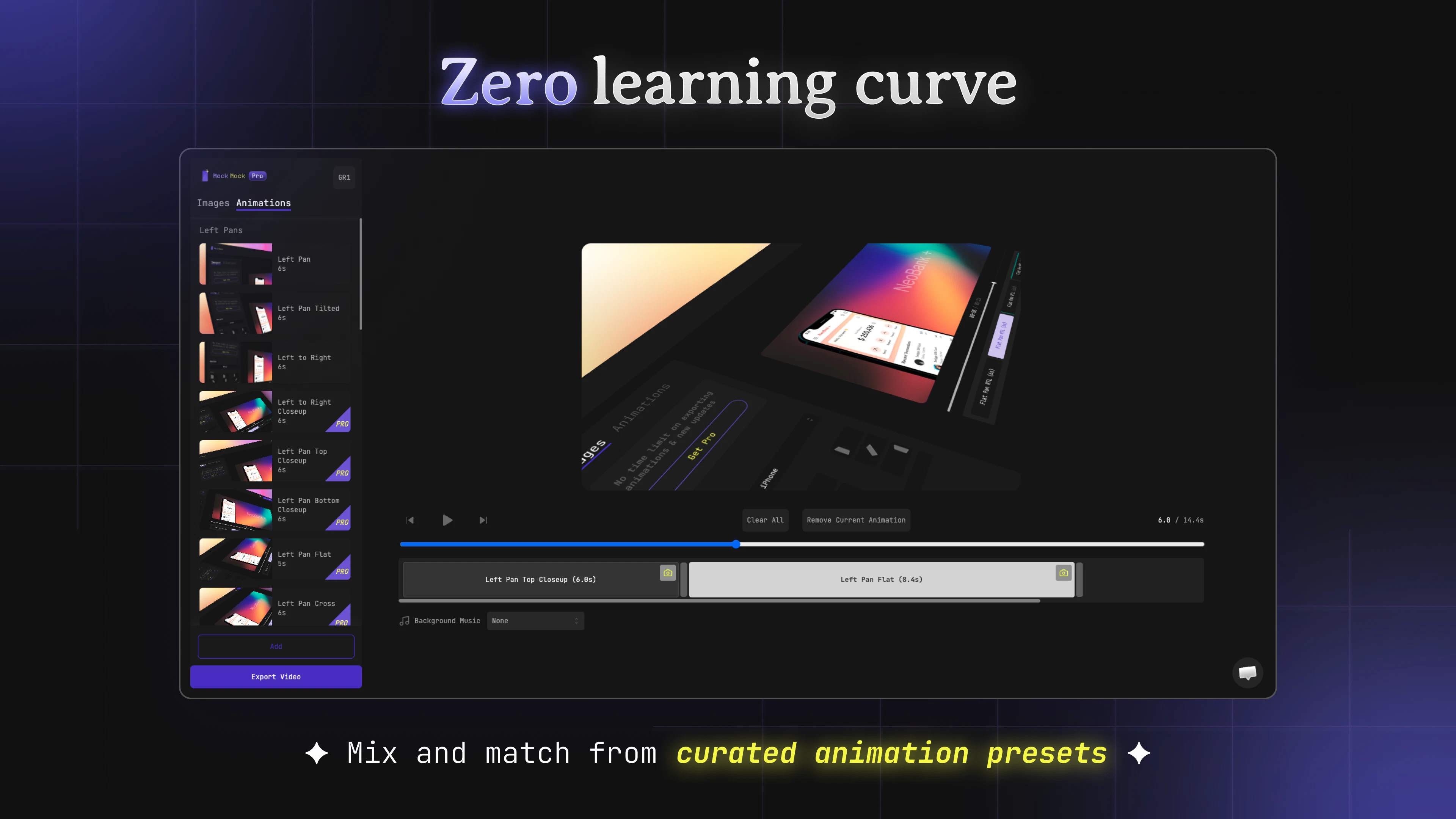A web-based tool to create studio quality 3D mockup images & videos in few clicks. Mix and match from tons of preset animations and create beautiful promo videos in minutes.