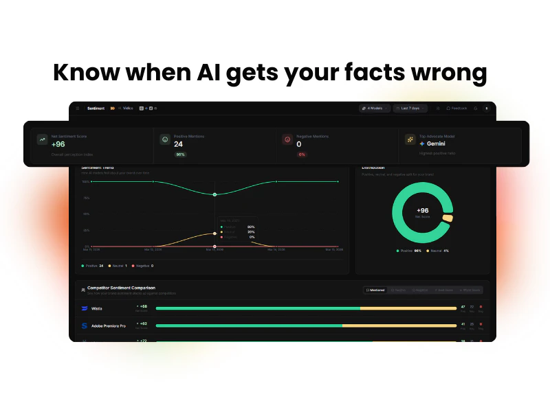 Prompt Zero tracks how your brand appears across ChatGPT, Gemini, Grok, and Perplexity. Get a visibility score from 0-100, compare against competitors, and get alerts when AI shares wrong information about you. Think of it as Ahrefs for AI search. Free 7-day trial, no credit card.
