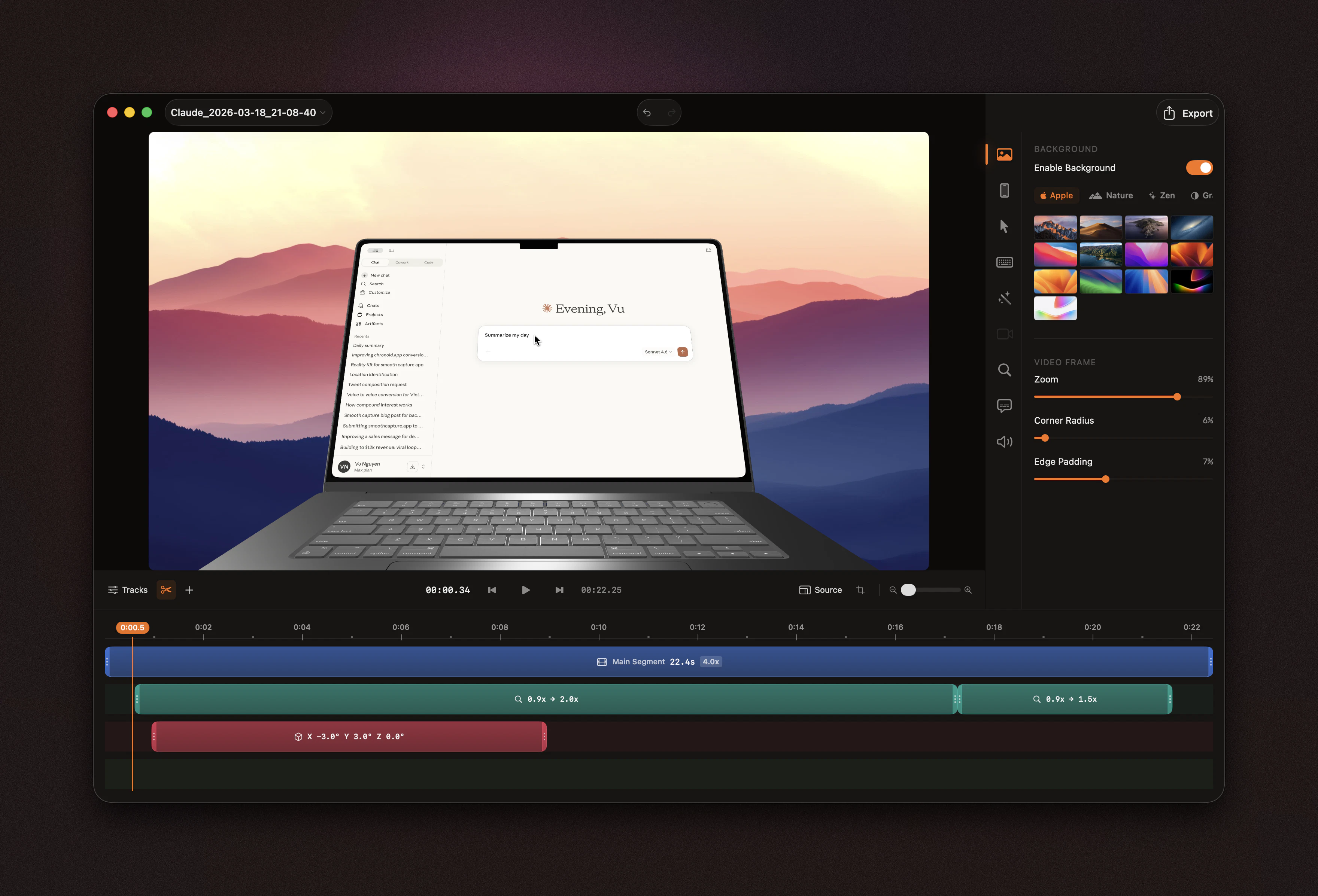 3D device frame screen recording for macOS