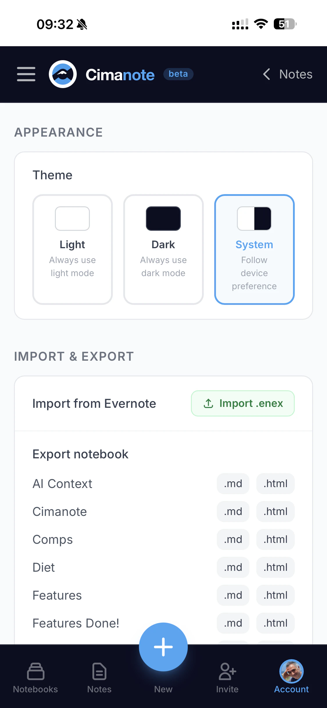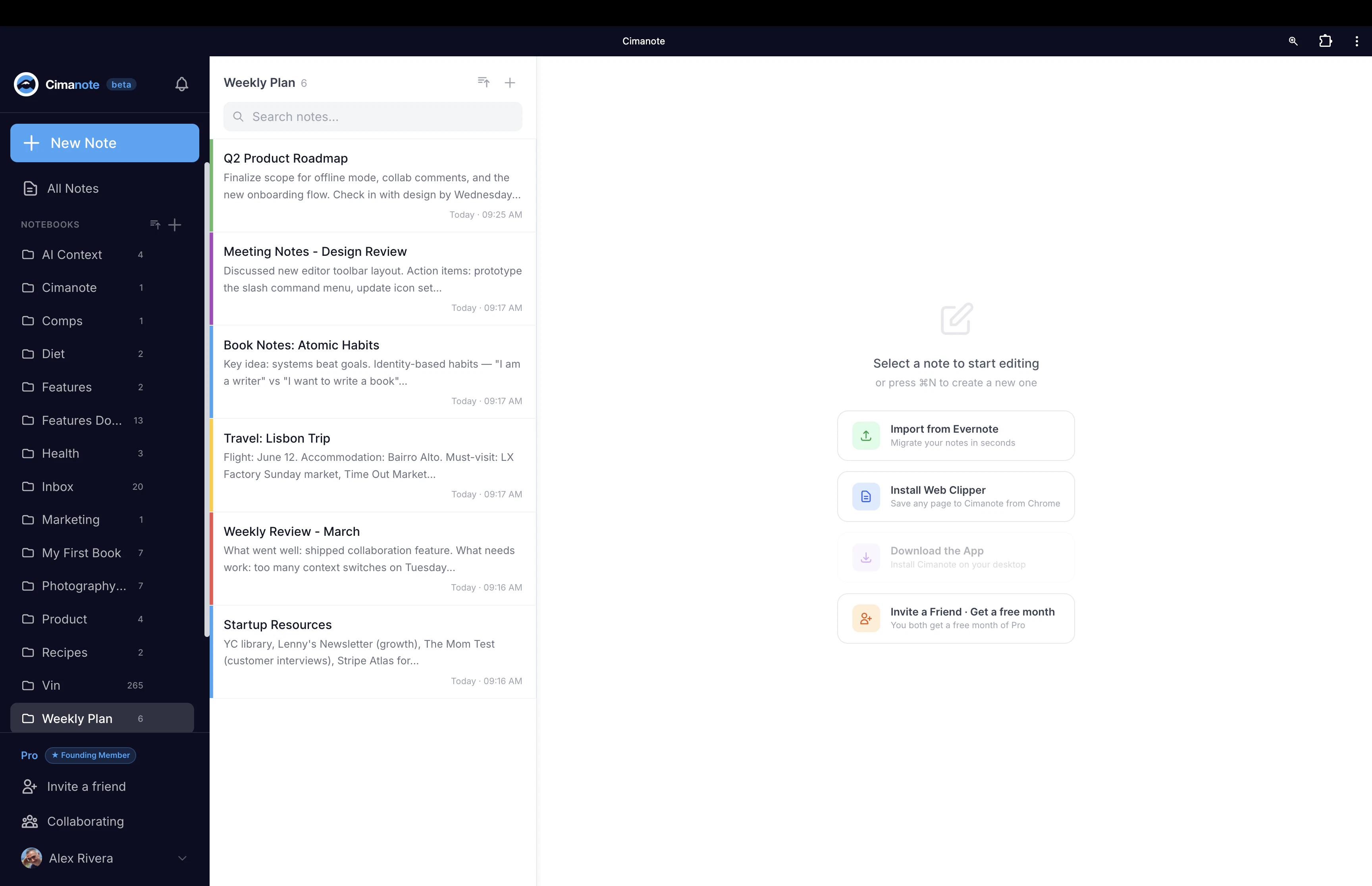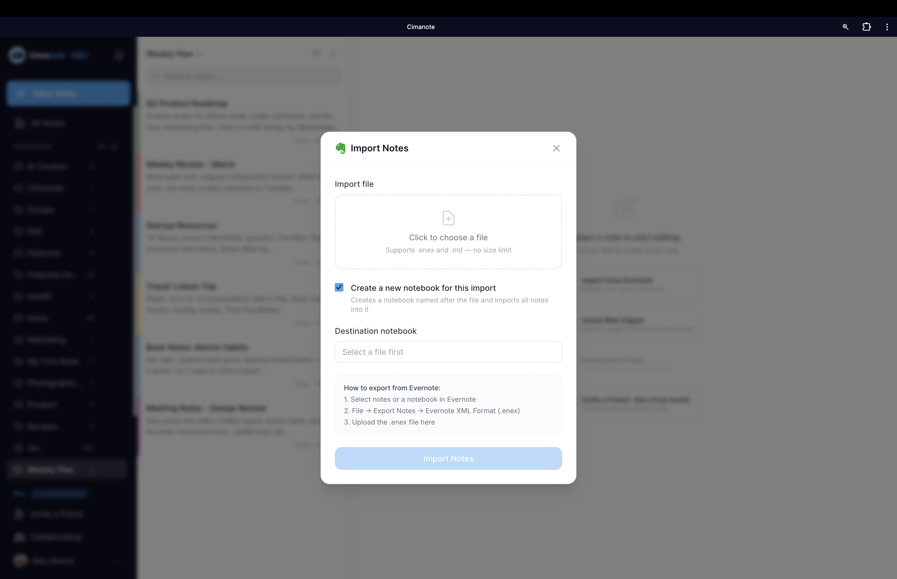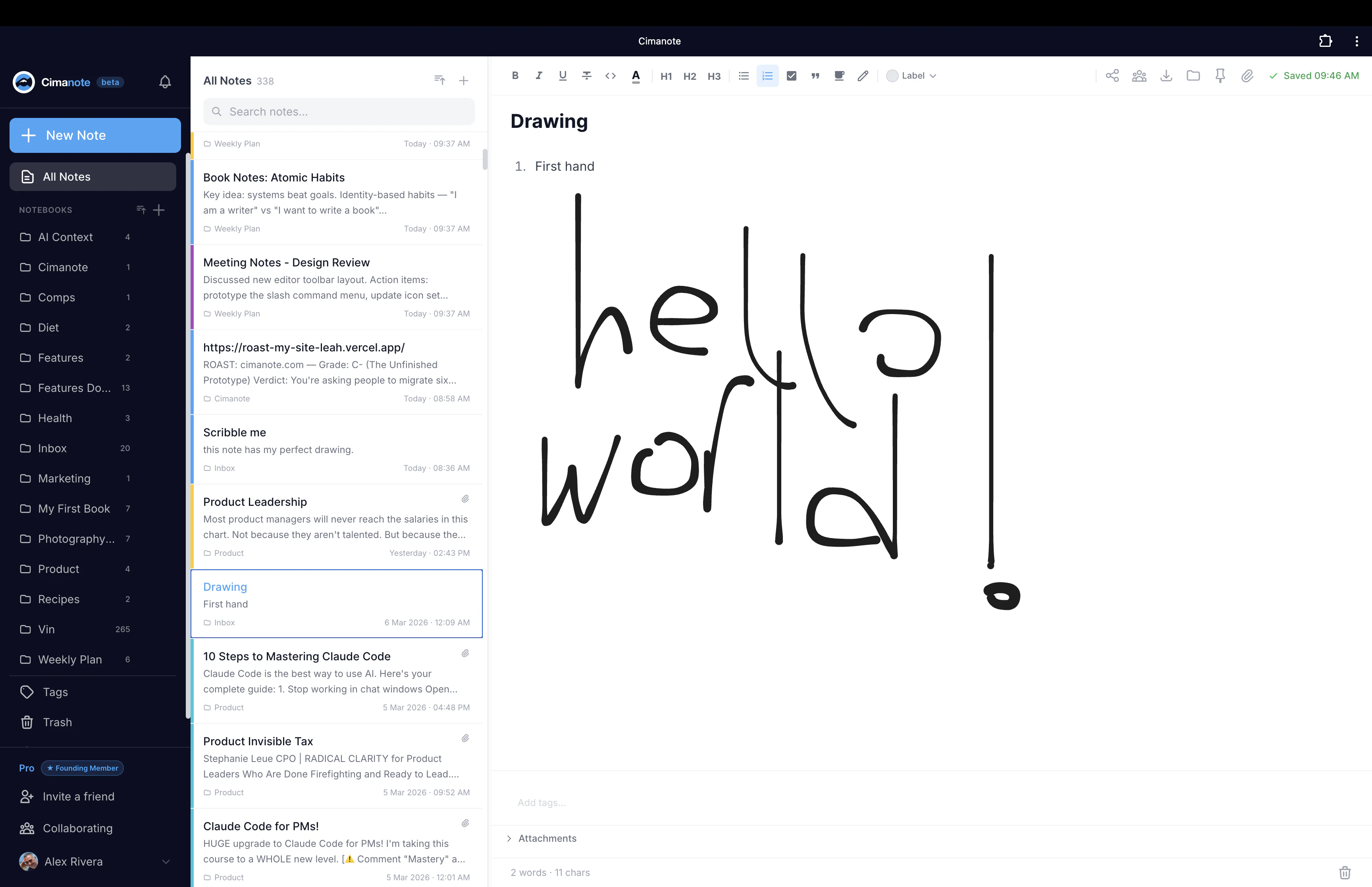 Evernote tripled prices, gutted the free tier to 1 device, and got slower every update. Enough was enough. Cimanote is the note app Evernote used to be: fast, clean, no bloat. Instant load · All devices · Rich editor · Evernote import (notes, notebooks, tags, attachments, all intact) · Real-time collaboration · Your data, always exportable. First year is completely free for our first 500 users. No card required. Then $6/mo, no surprises, ever. — Blagoja, founder