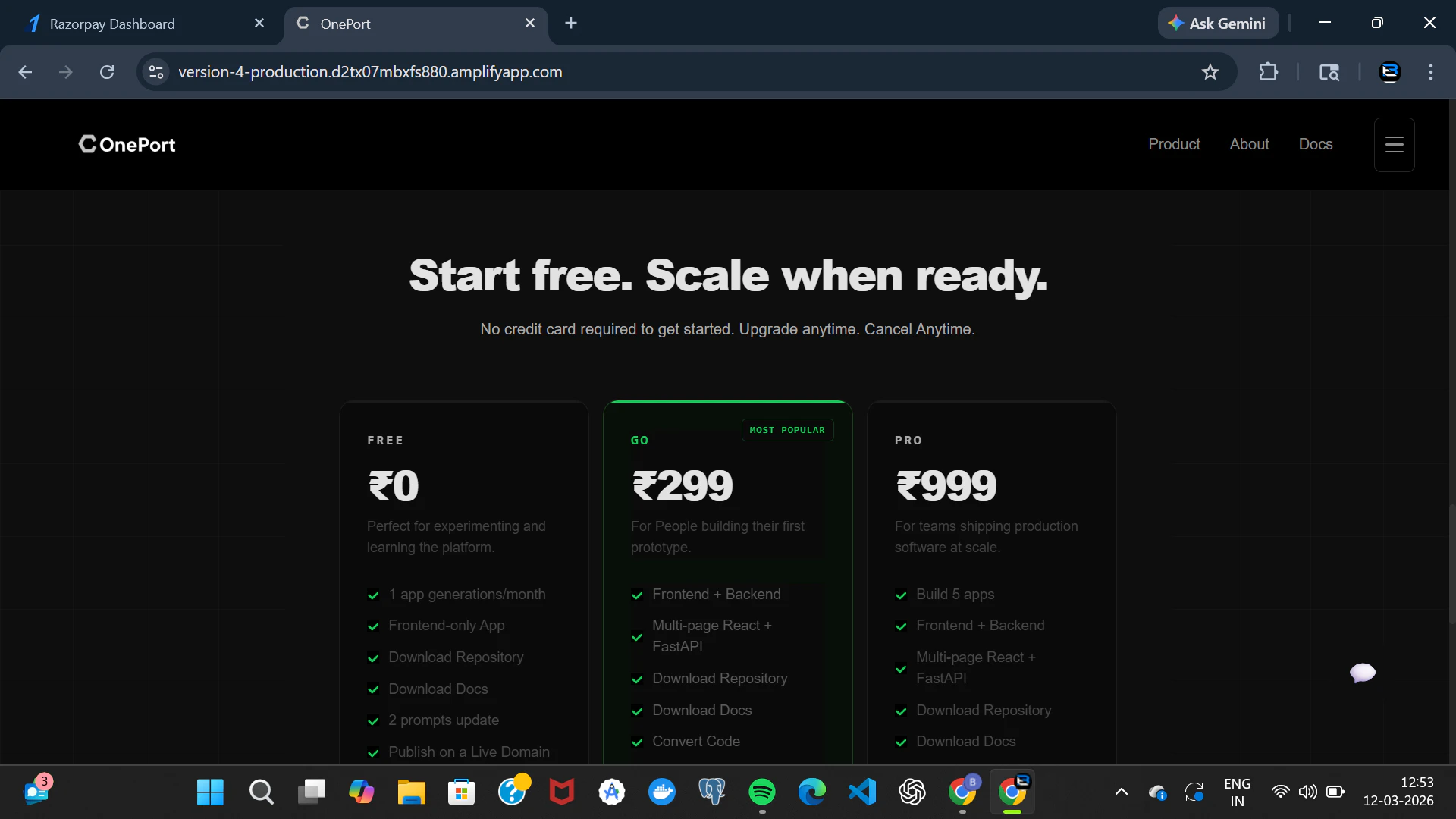 Generate production grade websites just by prompts. Differentiator: 1) User Independent backend (not supabase) 2) Track Analytics of website once live 3) Price per app basis instead of credits. 4) Acquired 200+ users in just 1 hr of launch in college campus Built this in 6 months solo in my college dorm room. Vision is to integrate vibe coding with Agentic AI and make it more developer focus. I am building a tool which makes developers 10x productive with AI instead of replacing them.
