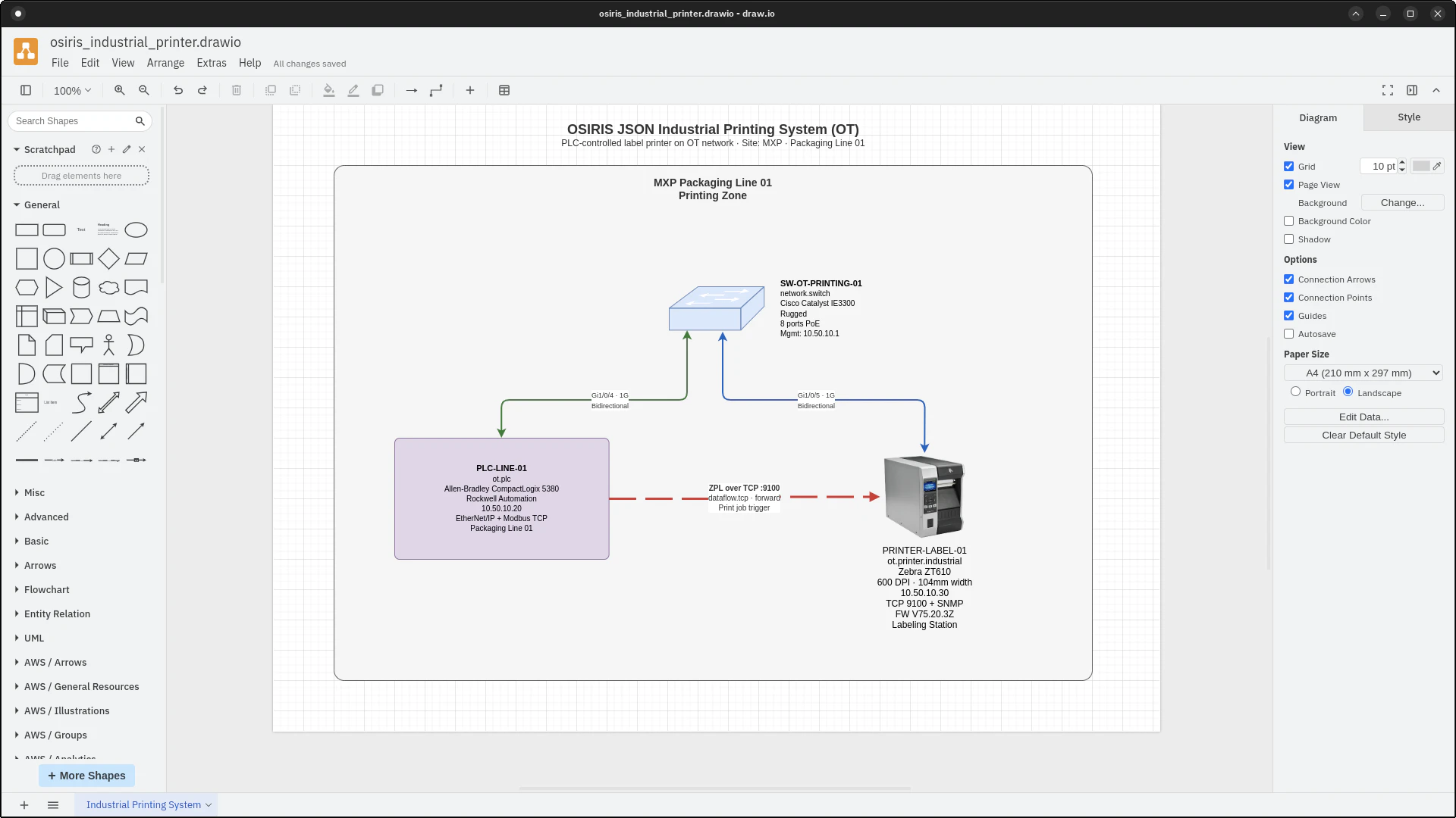 OSIRIS (Open Standard for Infrastructure Resource Interchange Schema) defines a vendor-neutral JSON format for describing infrastructure resources, their properties and their topological relationships across heterogeneous IT and OT environments. OSIRIS is a neutral interchange schema: it is designed to normalize and standardize infrastructure data exports from diverse domains and enable portable consumption by tools without requiring consumers to develop and maintain vendor-specific parsers.