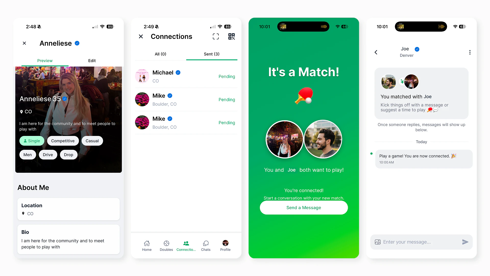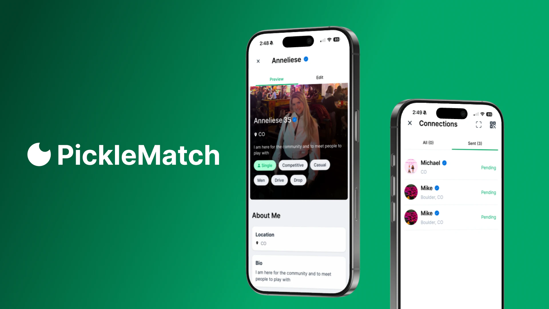 PickleMatch connects singles for pickleball dates. The app that helps you: • find people near you who also play • match based on skill level and where you play • turn that match into an actual game The first date is already planned, and it's pickleball. Time, place, and even doubles partners can be coordinated in the app. We launched in October on iOS and Android. Today we have 700+ active profiles, 1,500 people on the waitlist. People are already meeting every week.