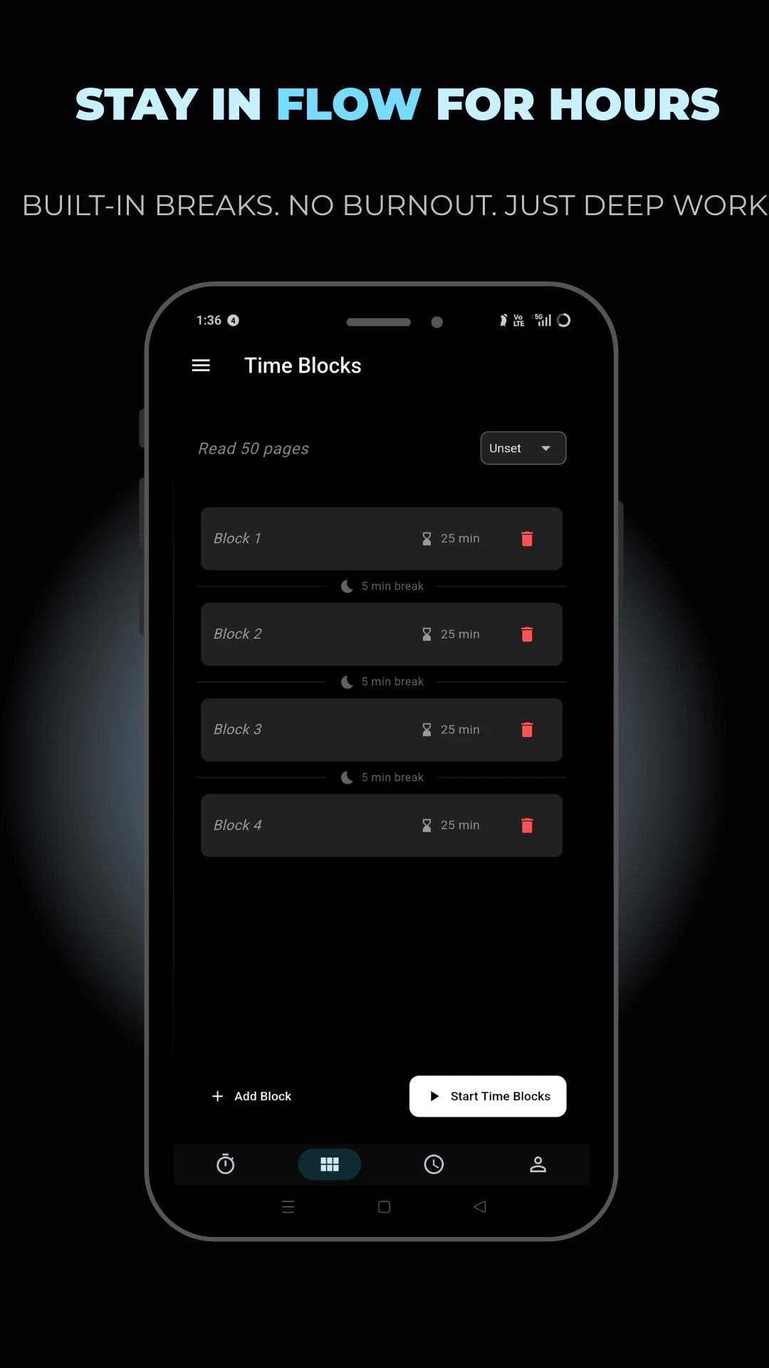 Most focus apps are either too simple or too bloated. Flow sits right in the middle. What makes it different, Flow Triggers let you schedule sessions in advance and start with one tap from a notification. No friction, no "I'll start in 5 minutes." Pomodoro for sprints. Time Blocks for hours of deep work. App Blocking to lock out distractions. Analytics to track real progress. Everything you need. Nothing you don't.