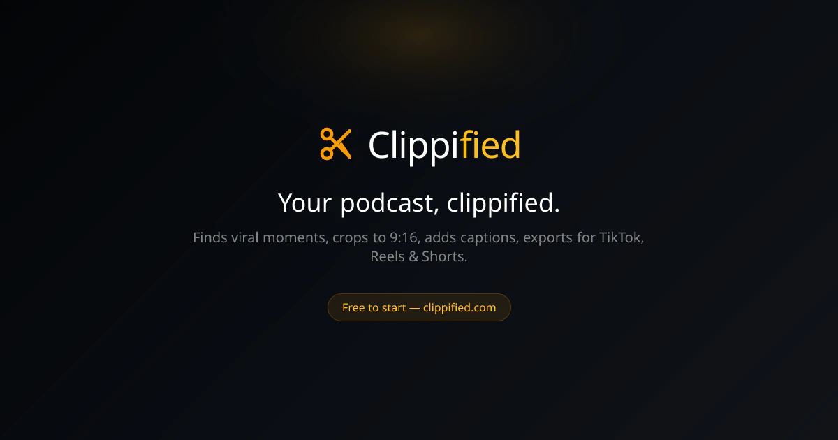 Paste any YouTube link. Clippified finds the most shareable moments, crops to 9:16, adds captions, and exports clips for TikTok, Reels & Shorts. Free to start.