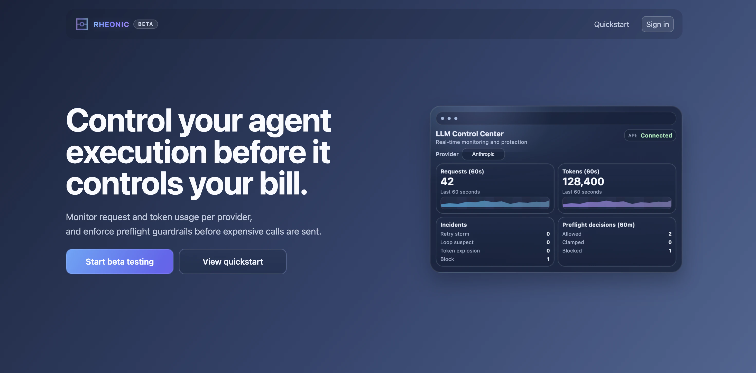 Rheonic controls LLM API usage before requests are sent. It detects patterns like retries and loops, enforces limits on calls, and helps prevent costs from growing unexpectedly across major providers.