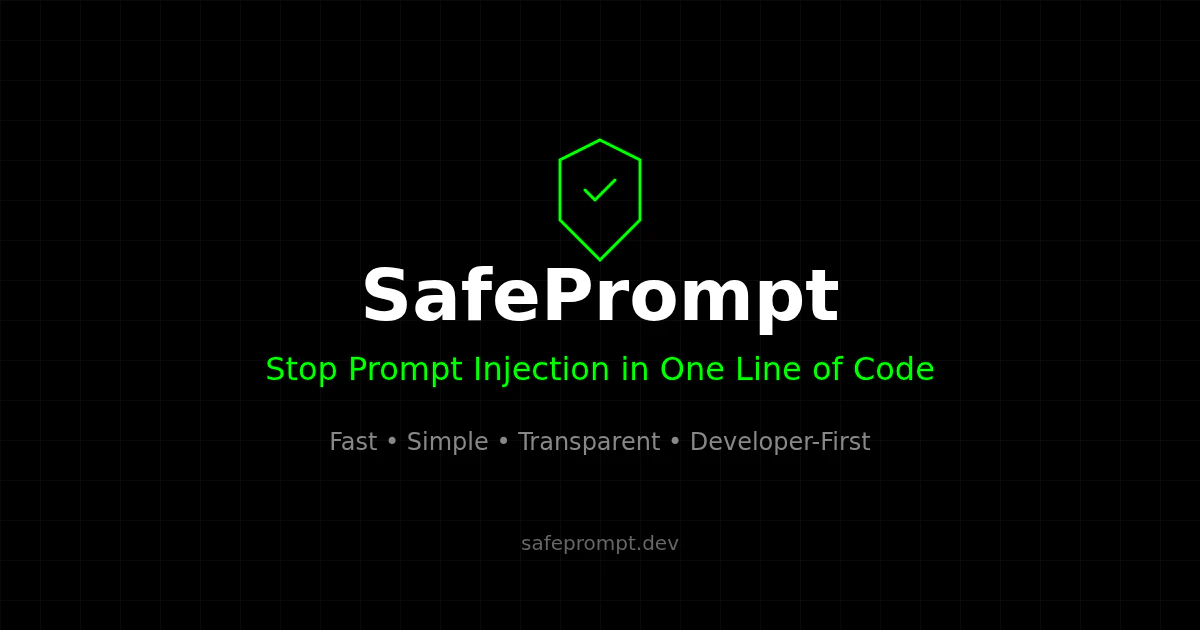 Protect AI apps from prompt injection with one API call. Pattern detection in <100ms, 95%+ accuracy. Free tier: 1,000 requests/month. No security expertise needed.