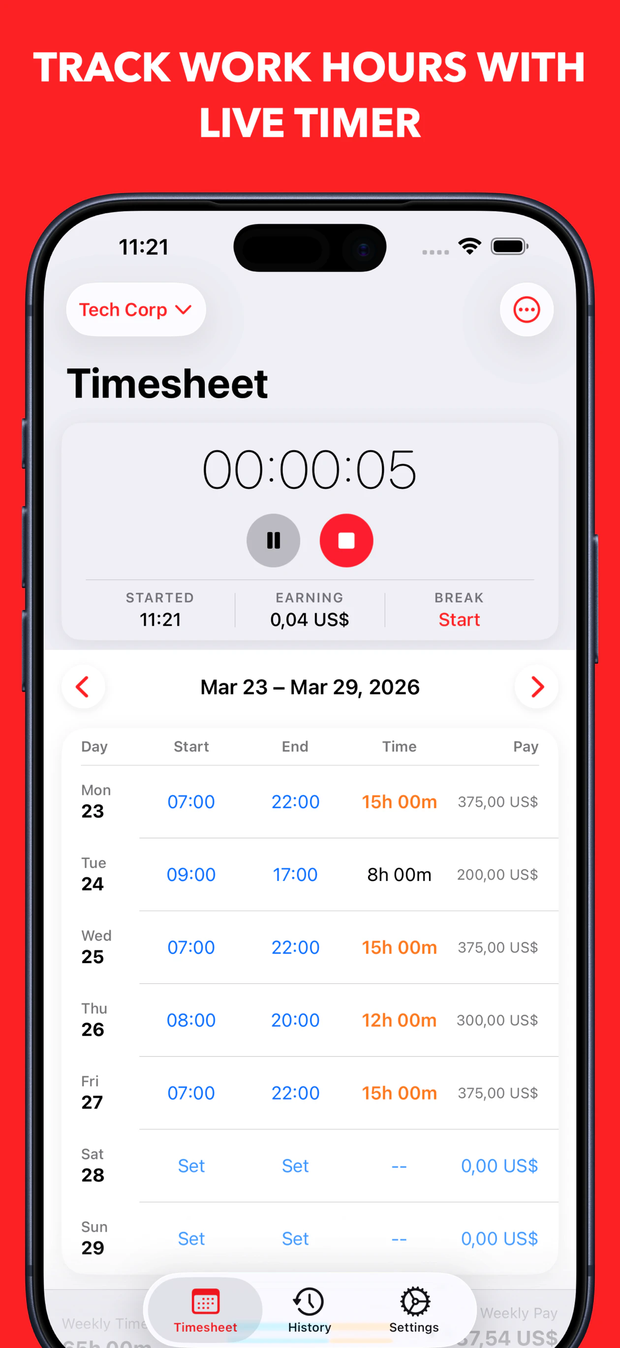 Track work hours, overtime and pay without complexity